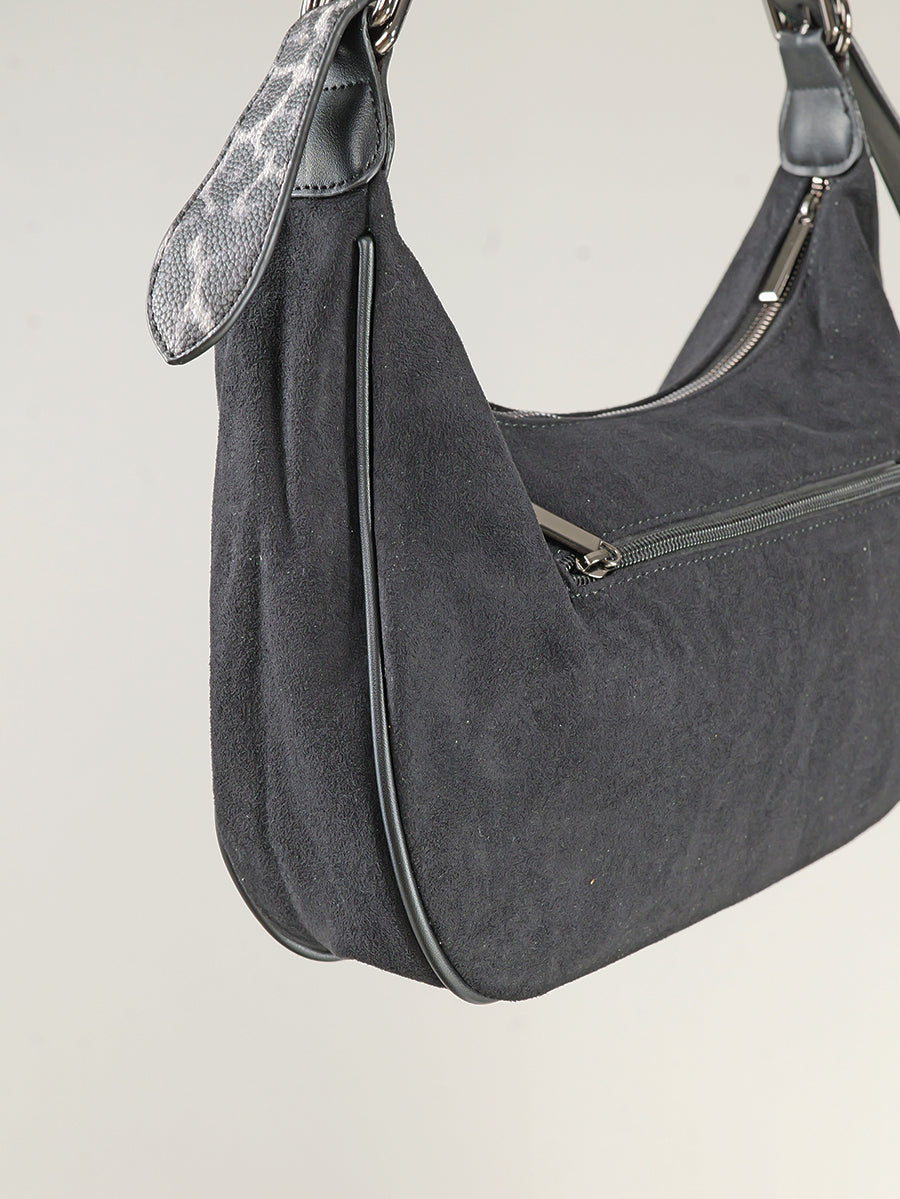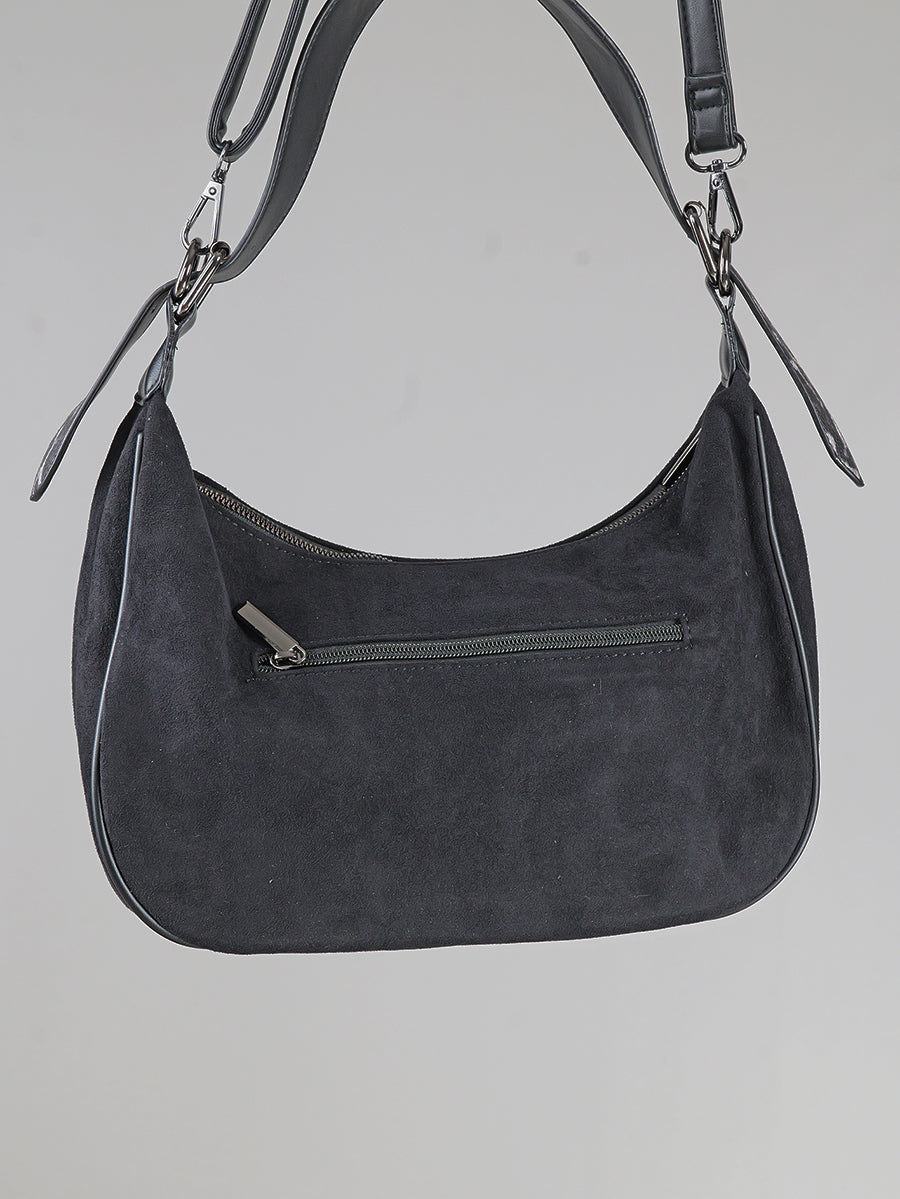 Velours Leder Optik Tasche mit Zip und langem Trageriemen
