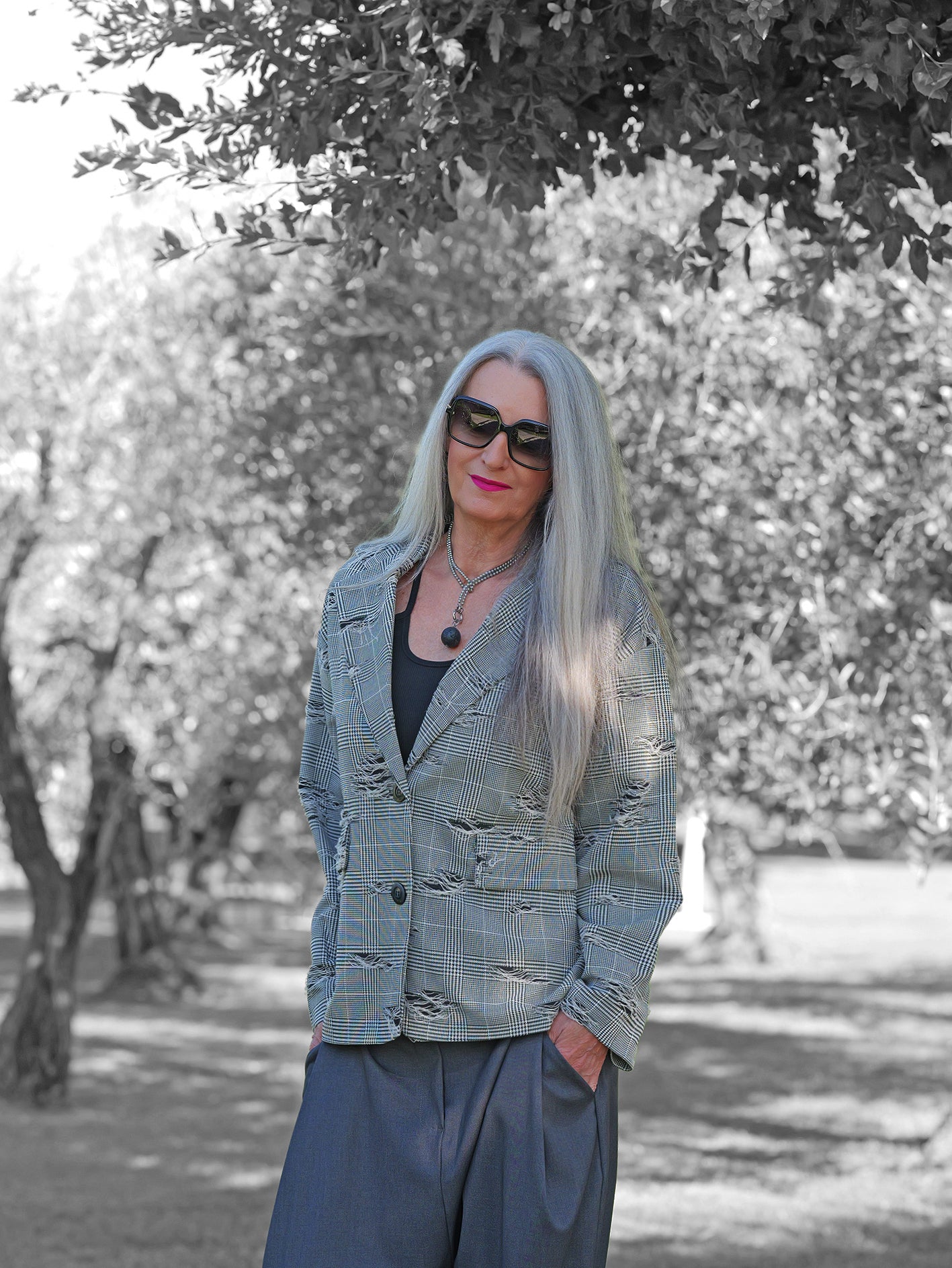 Der Blazer Arabba vereint klassisches Karo-Design mit einem modernen Vintage-Twist. Das markante Destroyed-Muster macht ihn zu einem echten Hingucker und verleiht jedem Outfit eine individuelle Note. Dank des lockeren Schnitts und der Einheitsgröße passt er bis Größe 42 und bietet dabei angenehmen Tragekomfort.