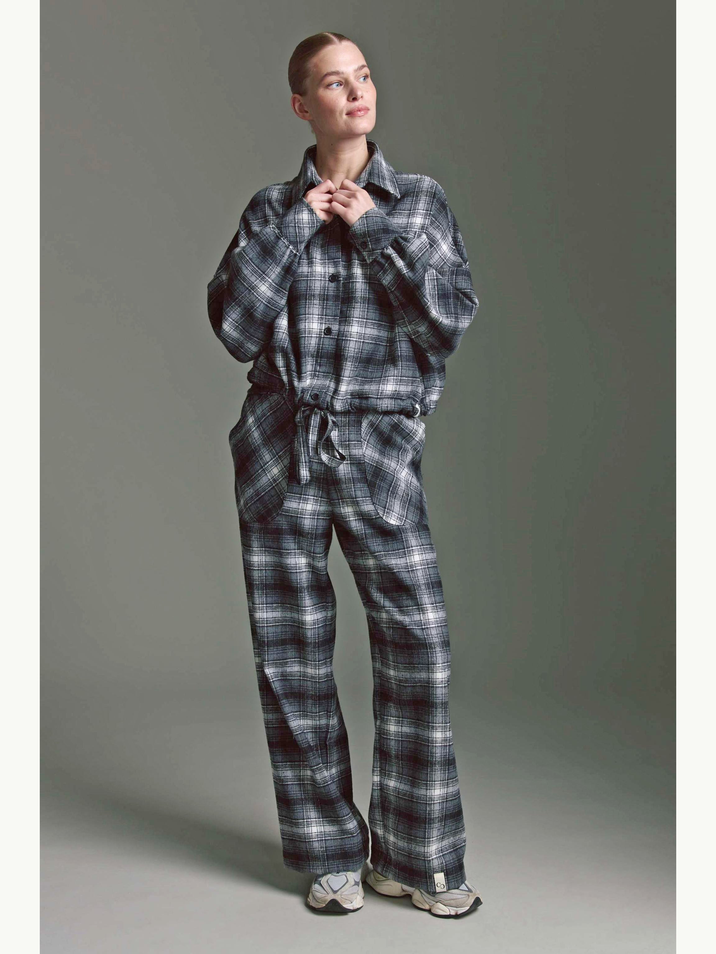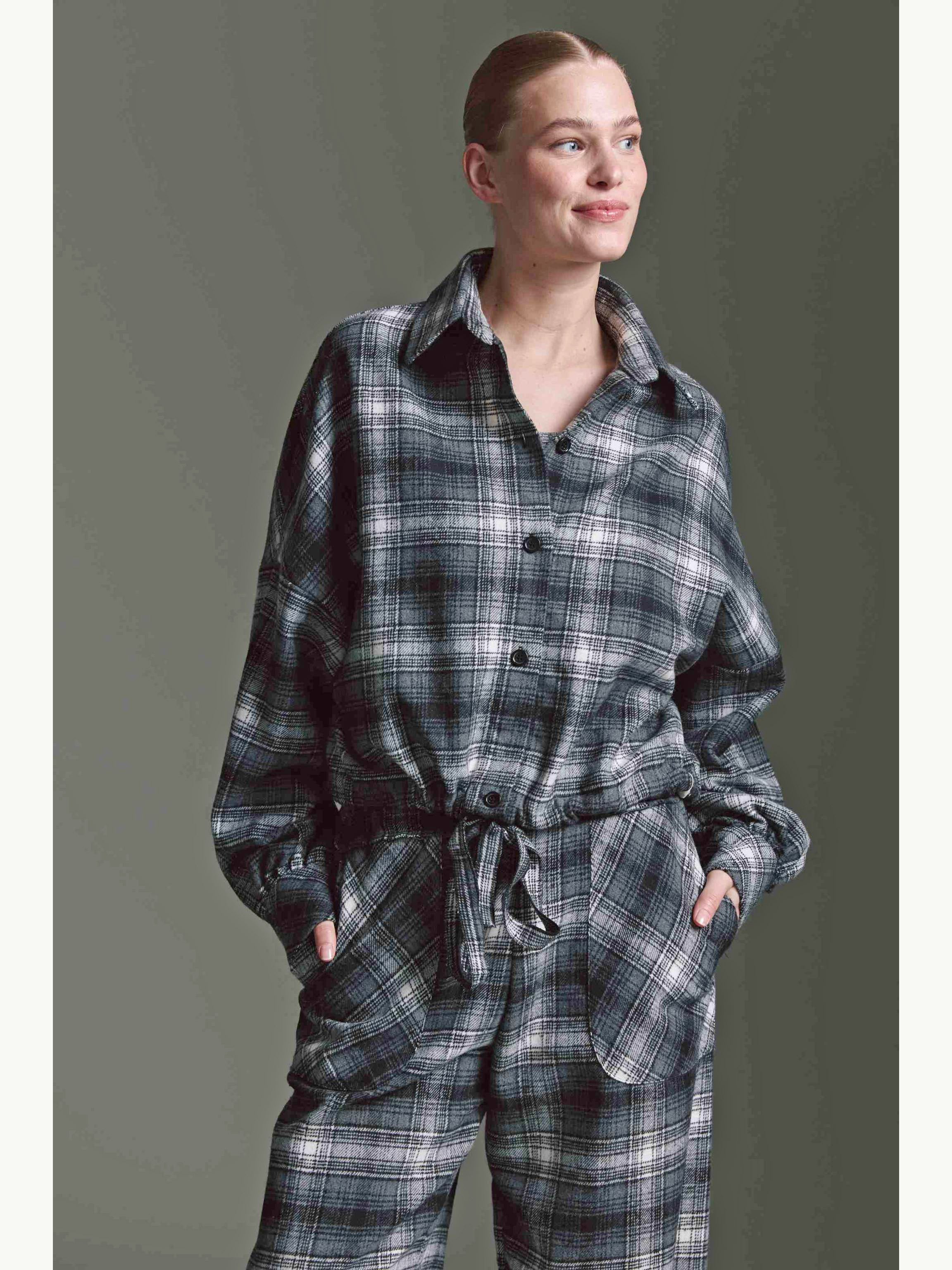 Unsere lässige, oversized Karo Bluse mit Ballonärmeln und Tunnelzug ist ein absoluter Hingucker.