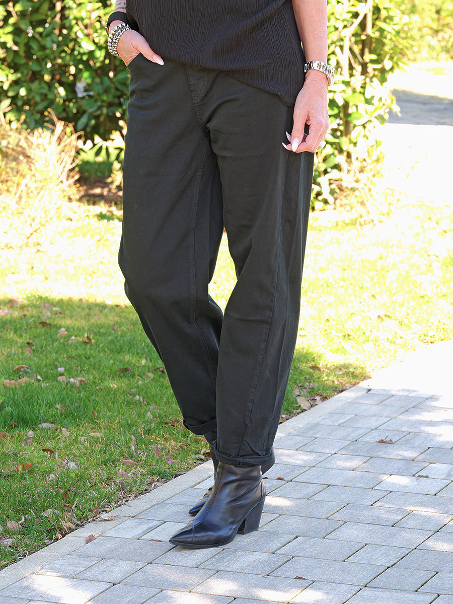 Die Black Denim Lola ist eine moderne, lässige Jeans mit klarer Linie und maximalem Tragekomfort. Der schwarze Denim wirkt zeitlos und vielseitig – perfekt für entspannte Alltagslooks ebenso wie für stilvolle Kombinationen am Abend.