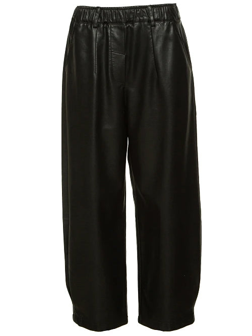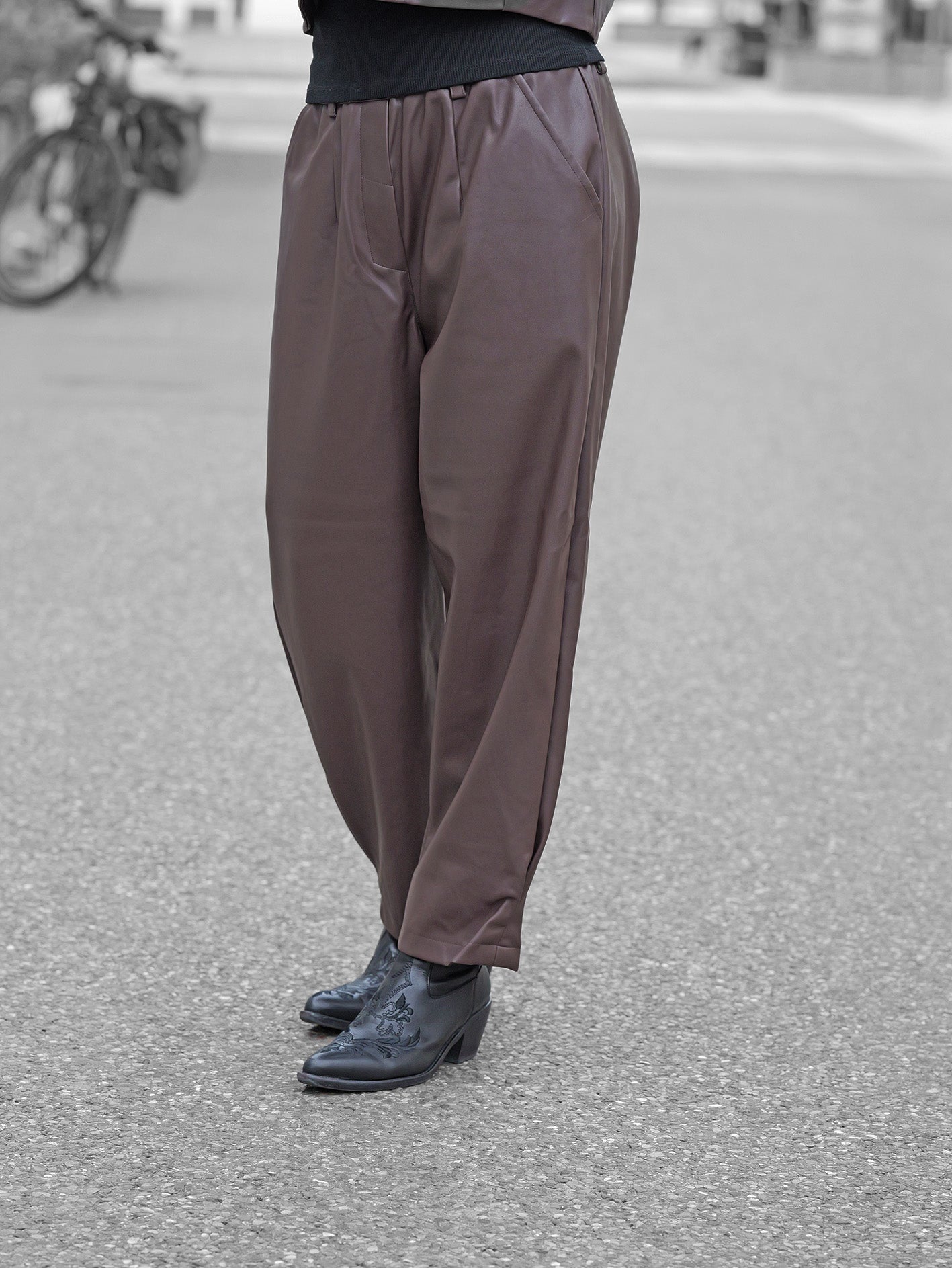 Diese lässige Kunstlederhose bringt einen modernen Look mit komfortabler Passform zusammen. Dank ihres weiten Schnitts und des elastischen Bundes sitzt sie angenehm und verleiht jedem Outfit eine trendige Note.