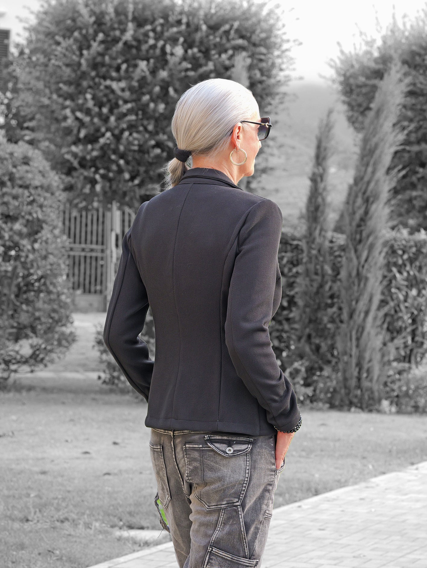 Der Blazer Tiziana ist ein echtes Highlight für alle, die Eleganz mit moderner Lässigkeit verbinden möchten. Der schmal geschnittene Ein-Knopf-Blazer zaubert eine schöne Silhouette und setzt durch den edlen Knopf vorne einen stilvollen Akzent.
