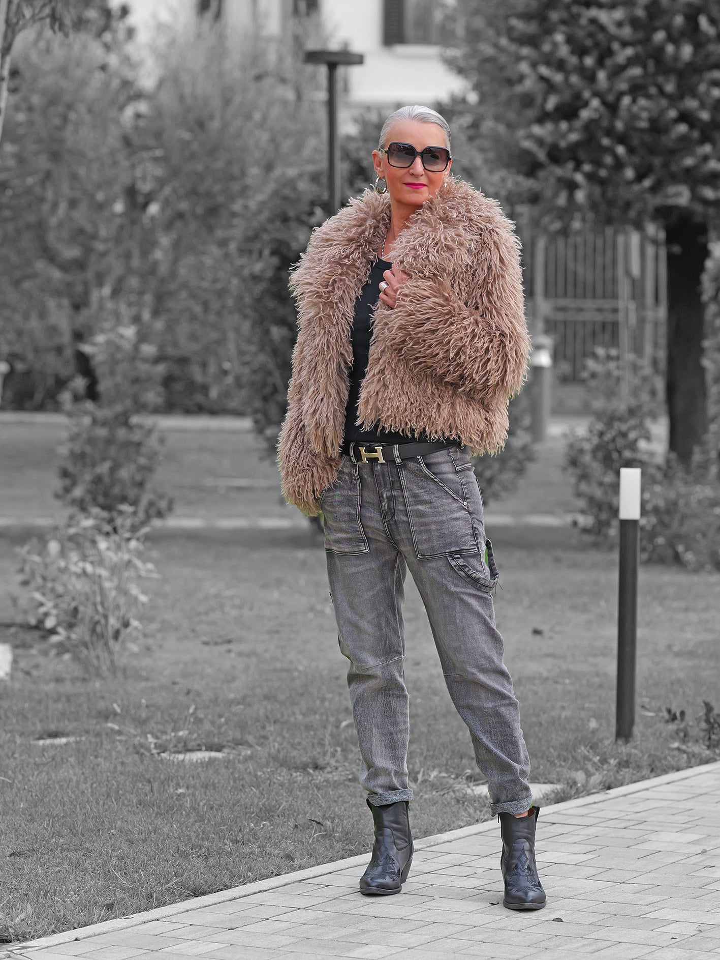 Besonderheit: flauschige Fake-Fur-Optik, die gleichzeitig Wärme und Style bietet