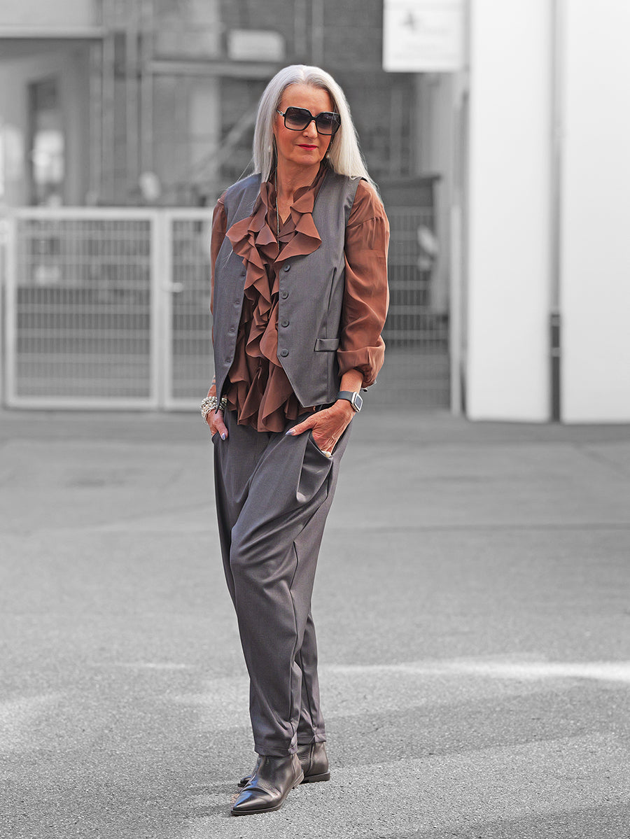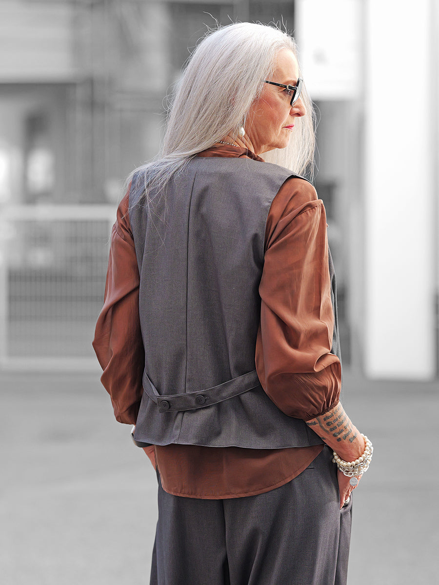 Style-Tipp: Die graue Weste ist die perfekte Alternative, wenn du es etwas klassischer und zurückhaltender magst – ein echtes Essential für deine Garderobe.
