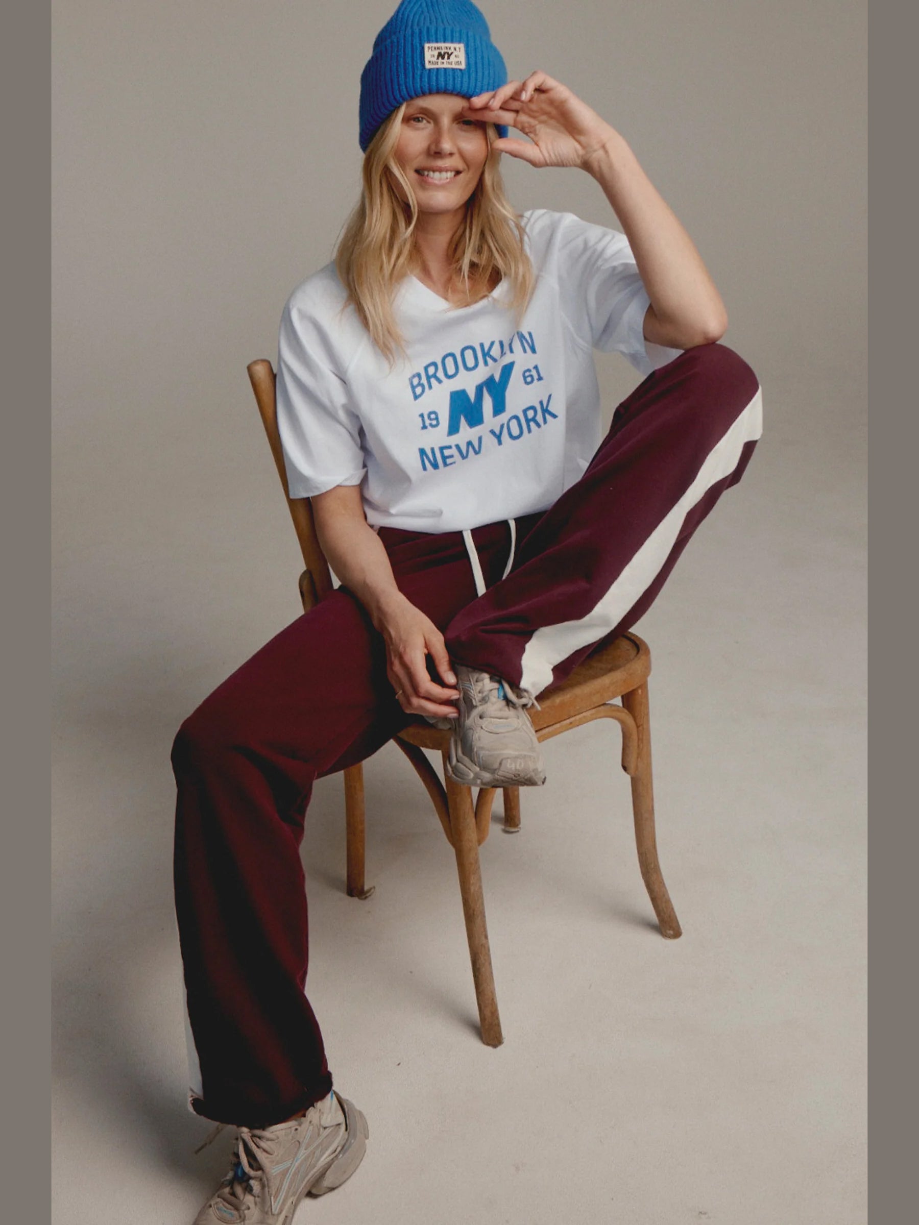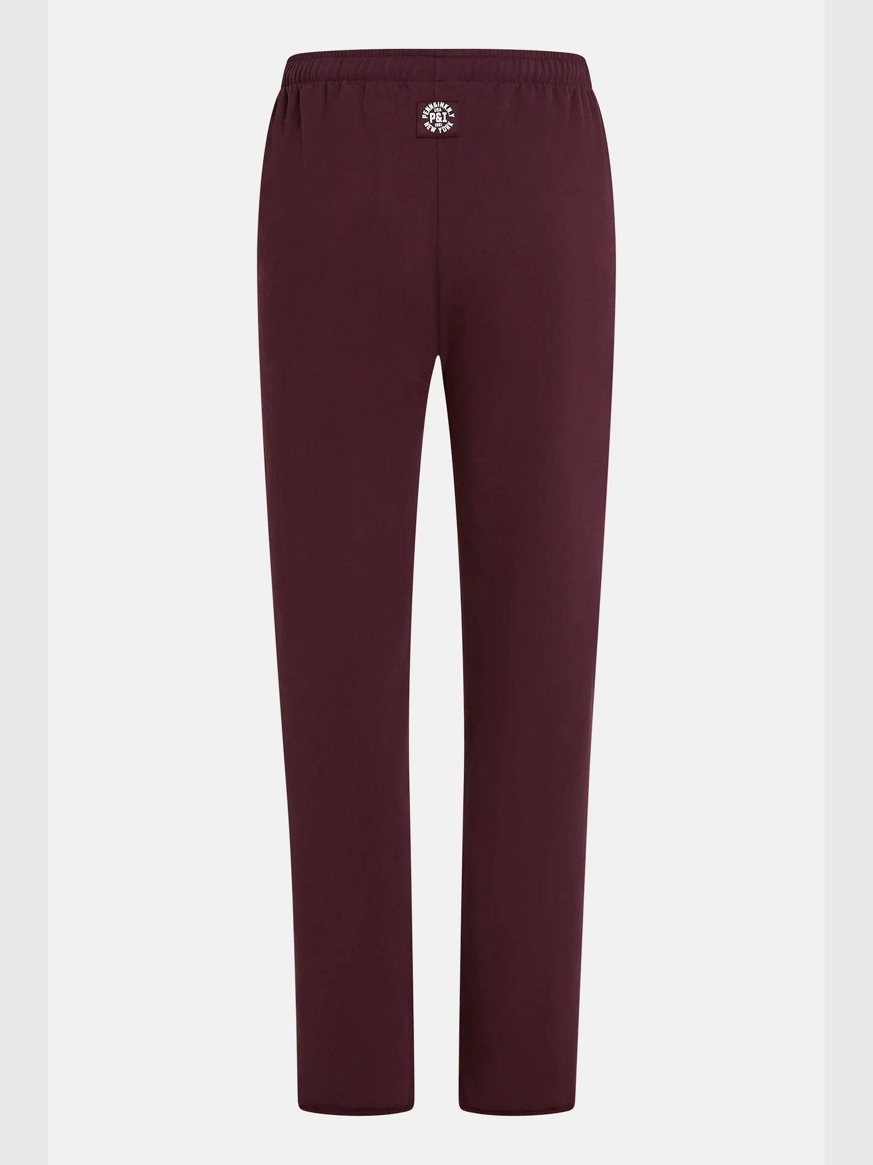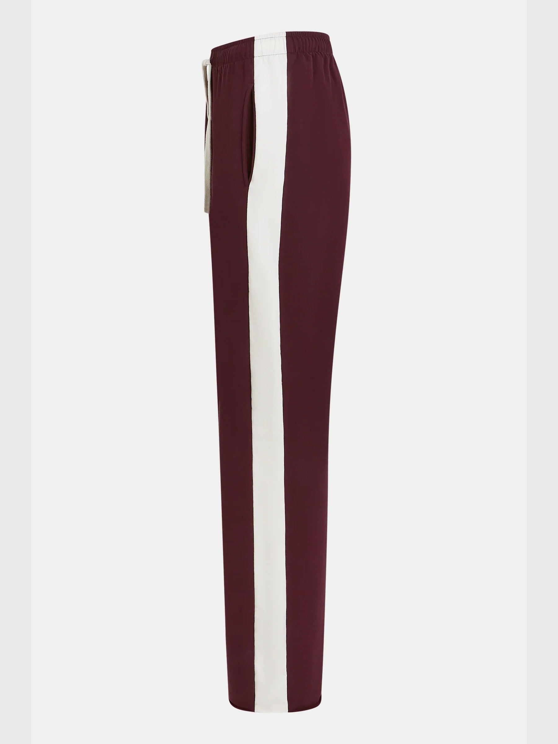 Veredeln Sie Ihre Freizeitgarderobe mit dieser locker sitzenden Hose in Aubergine, die mit kontrastierenden ecrufarbenen Seitenstreifen für einen sportlich-schicken Look sorgt. Mit ihrem elastischen Bund und Kordelzugverschluss bietet sie den ganzen Tag über Tragekomfort und sorgt gleichzeitig für einen lässigen, modernen Stil.
