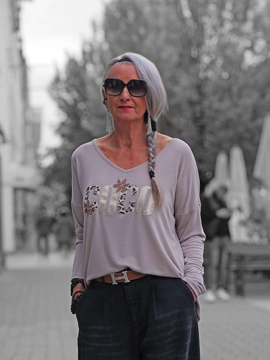 Styling-Tipp: Kombiniere Bea mit einer Wide-Leg-Jeans und eleganten Accessoires für einen modernen Streetstyle-Look.