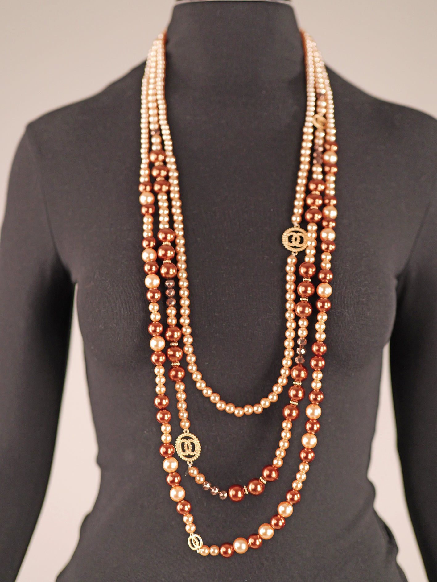 OFF#DLY Kunstperlenkette 3 Strang brown/gold