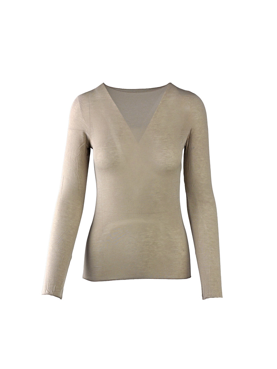 Der schmale Schnitt sorgt für eine feminine Silhouette und macht das Longsleeve zum idealen Layering-Piece – unter Blazern, Strick oder einfach solo getragen. Trotz seines leichten Stoffes bleibt es formstabil und angenehm zu tragen.