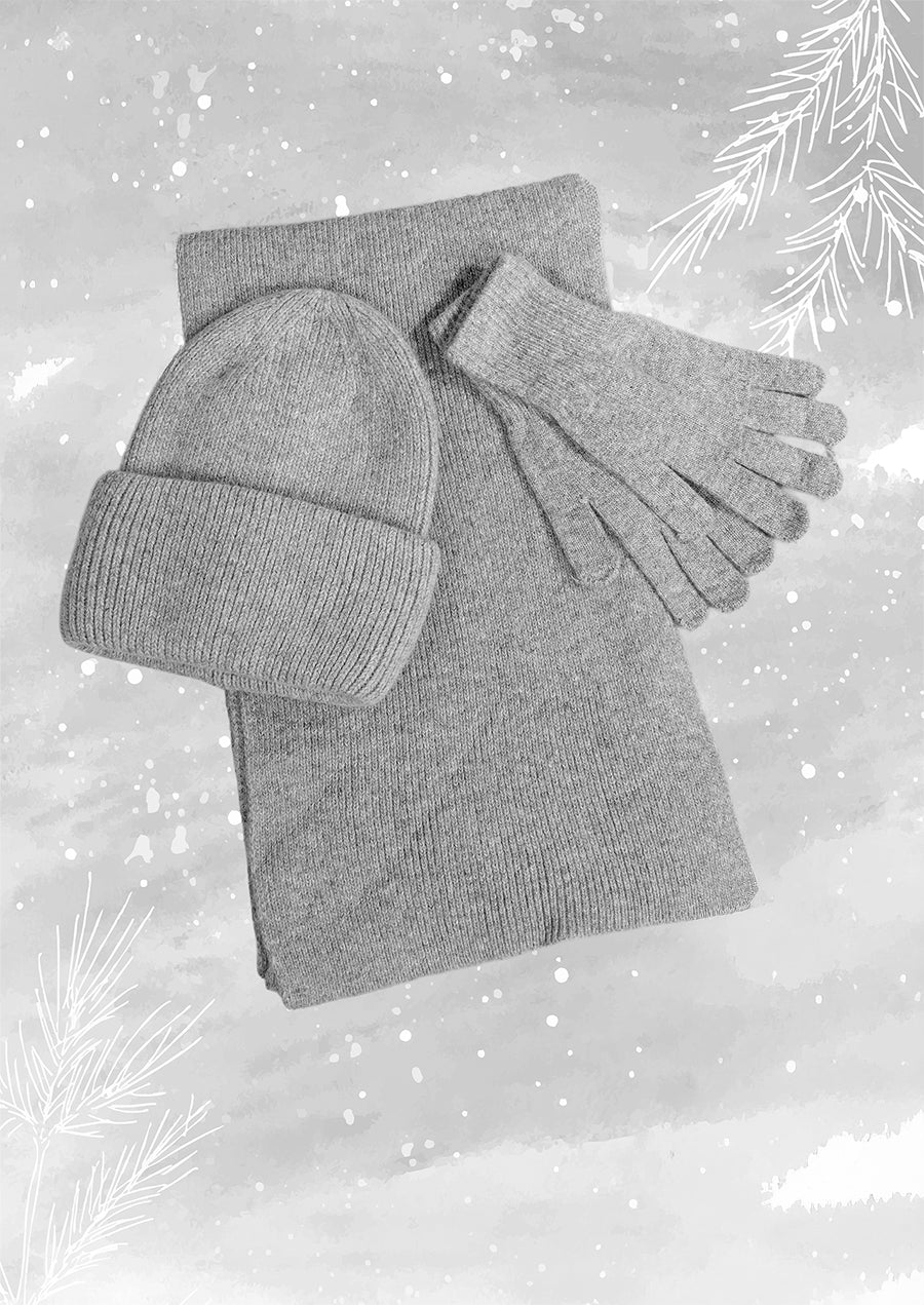 Mütze-Schal-Handschuhe Set – kuschelig weich & edel im Look
