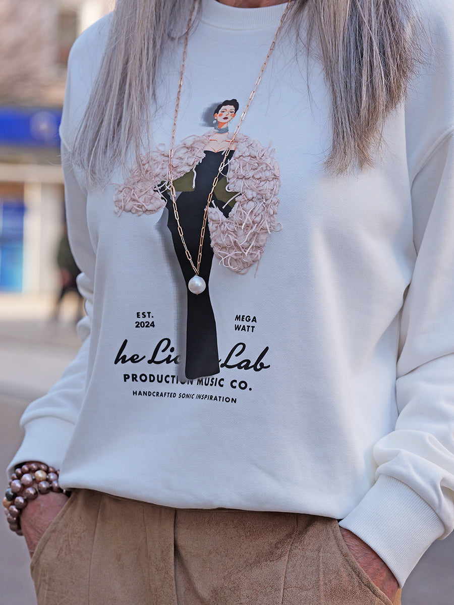 Der Print auf der Vorderseite, kombiniert mit dreidimensionalen Texturdetails, macht Laura zu einem Sweatshirt, das sofort ins Auge fällt – feminin, modern und mit liebevollen Fashion-Akzenten.