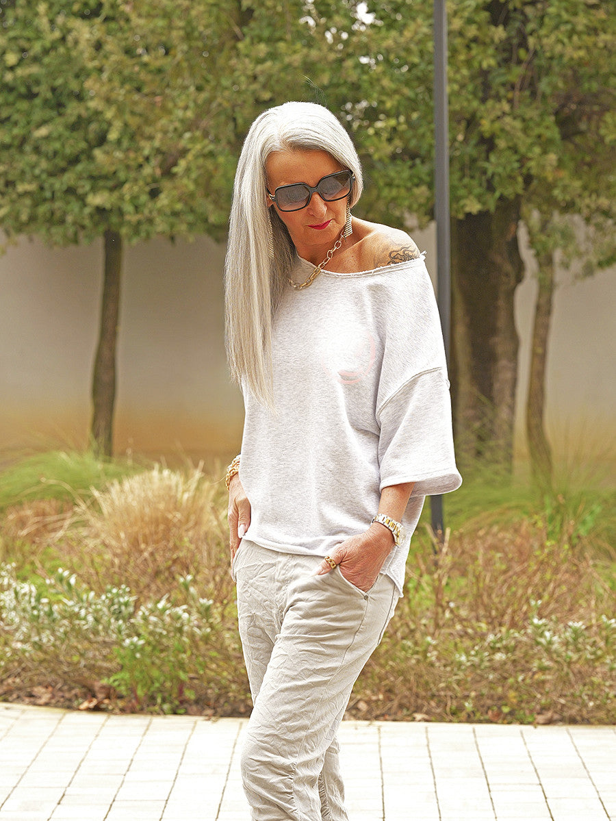 ✨ Petra trägt den Sweater besonders gerne leicht über eine Schulter gezogen – das verleiht dem Look eine extra Portion Coolness.