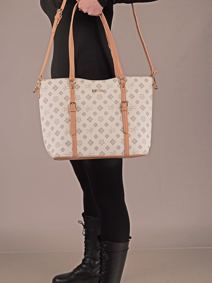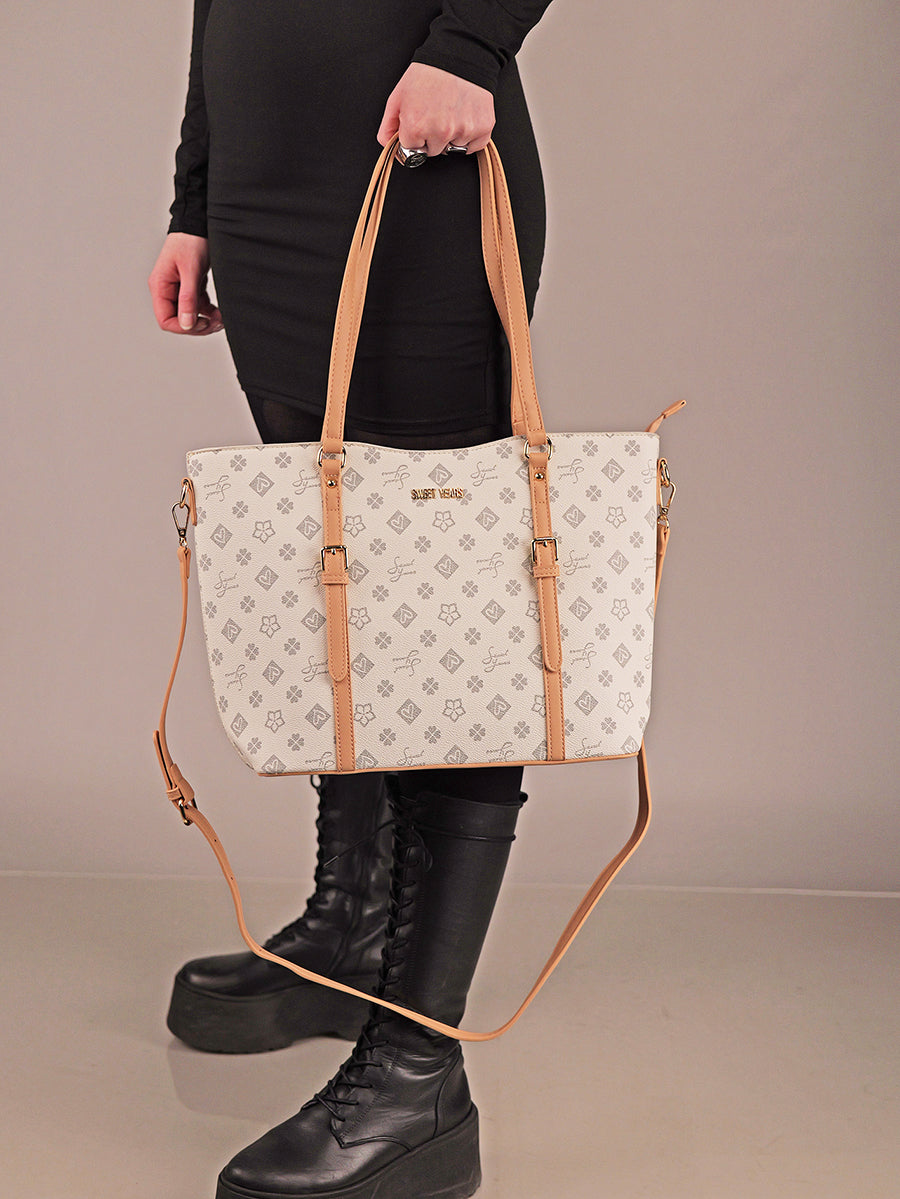 Der Shopper 71 von Sweet Years ist der perfekte Begleiter für Alltag, City und Shoppingtouren. Mit seinem Allover-Muster und den harmonisch abgestimmten Details setzt er modische Akzente und bietet gleichzeitig viel Platz für alles, was du unterwegs brauchst.