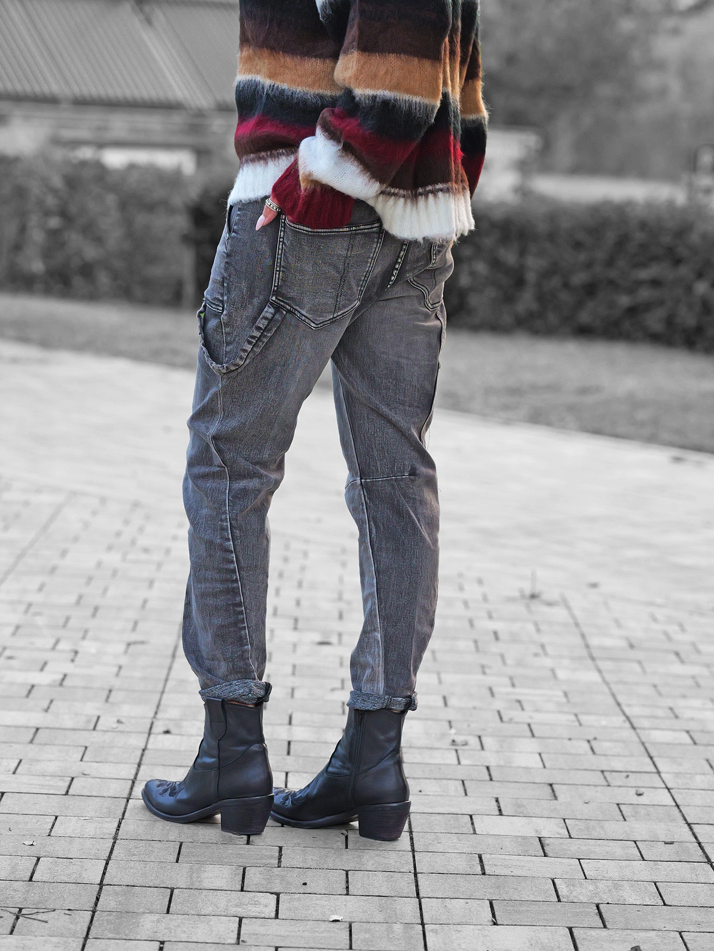 Details: markante Waschung, aufgesetzte Taschen, lässiger Destroyed-Style