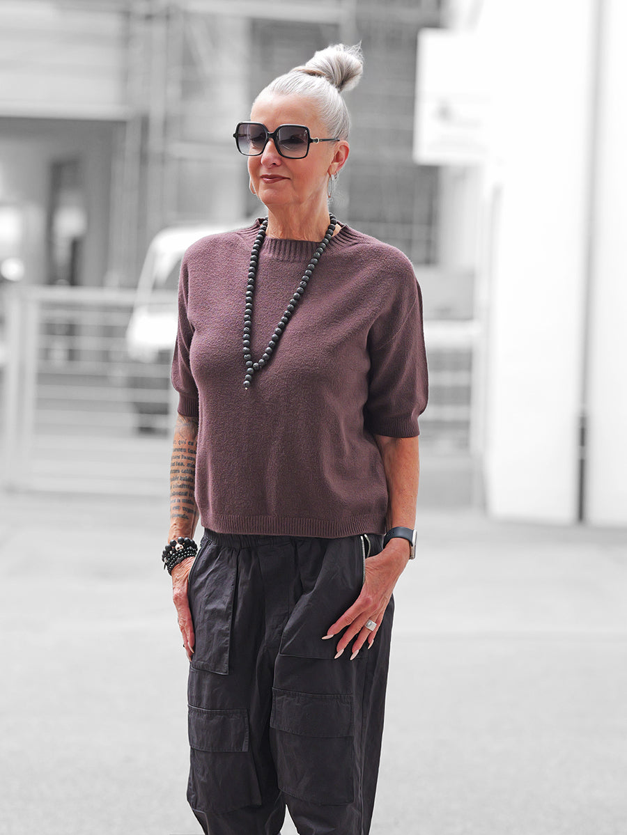 Styling-Tipp: Ob zu Cargo Pants, Jeans oder Rock – mit dem Pulli Tina setzt du immer auf einen cleanen, modernen Look.