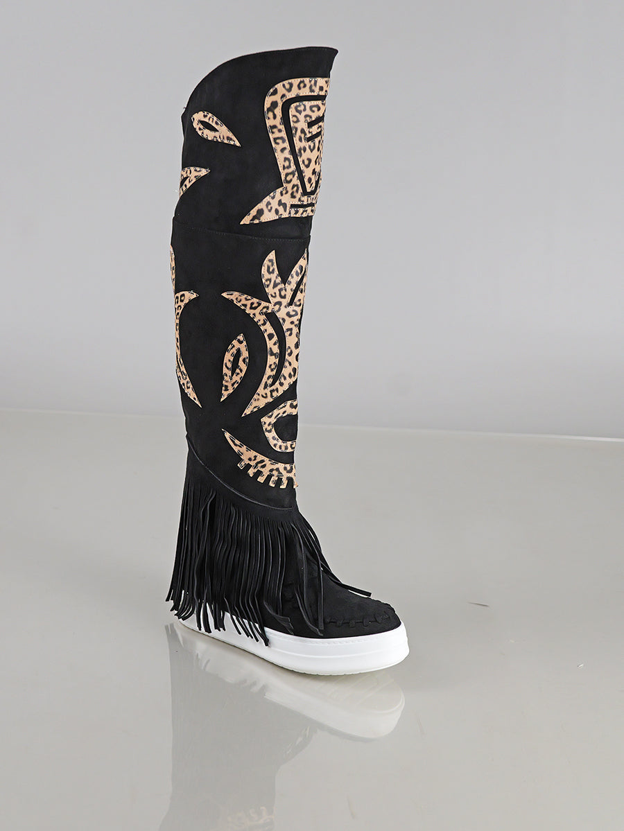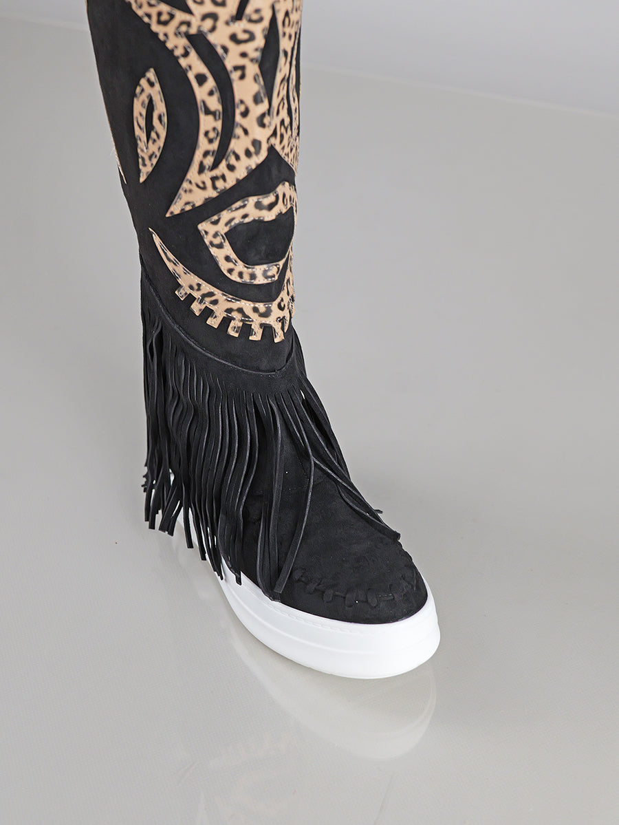 Stylischer Indy Boot mit Leo Aplikationen und Fransen