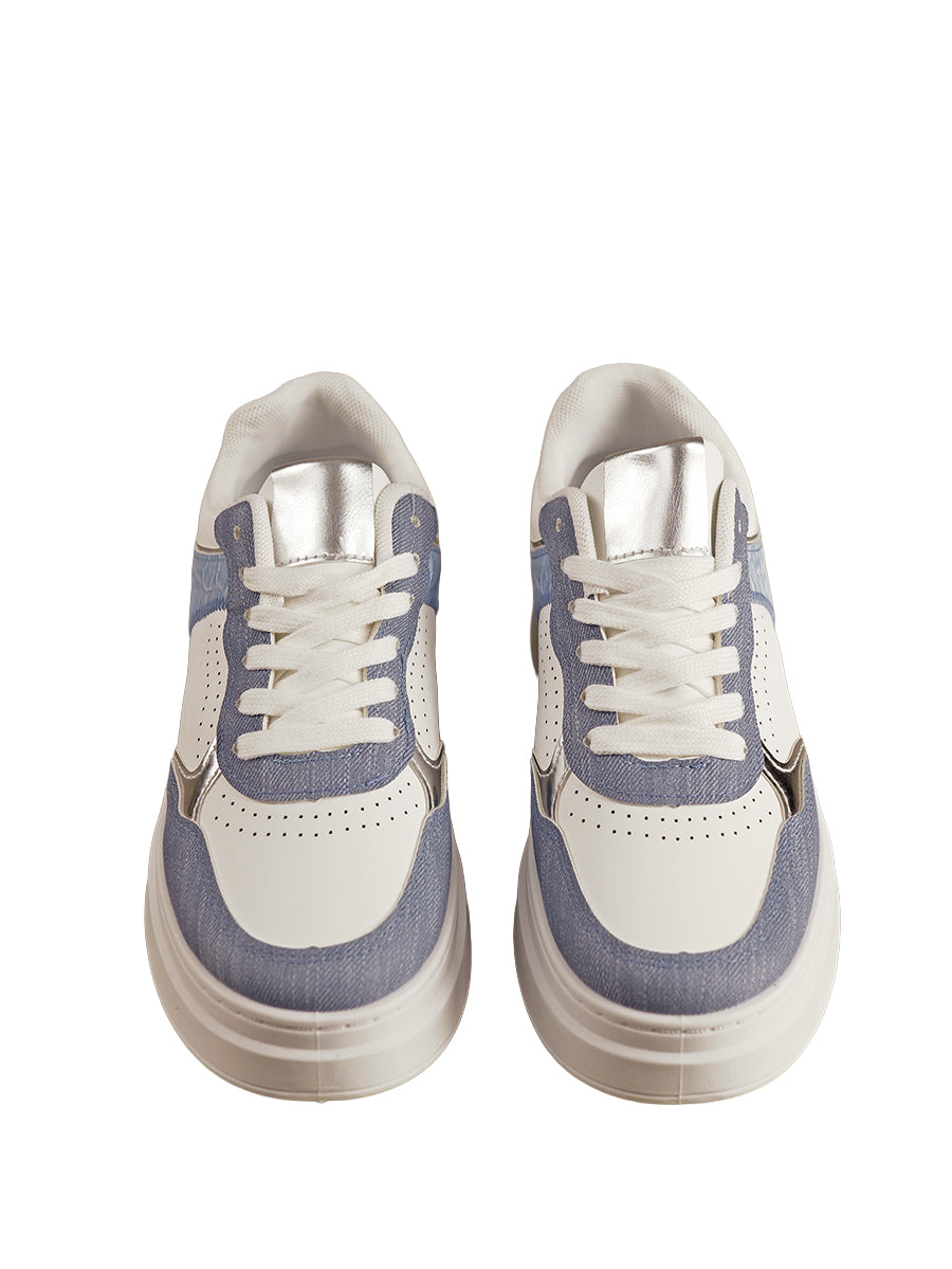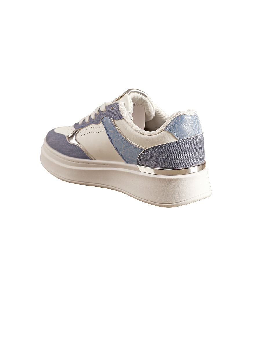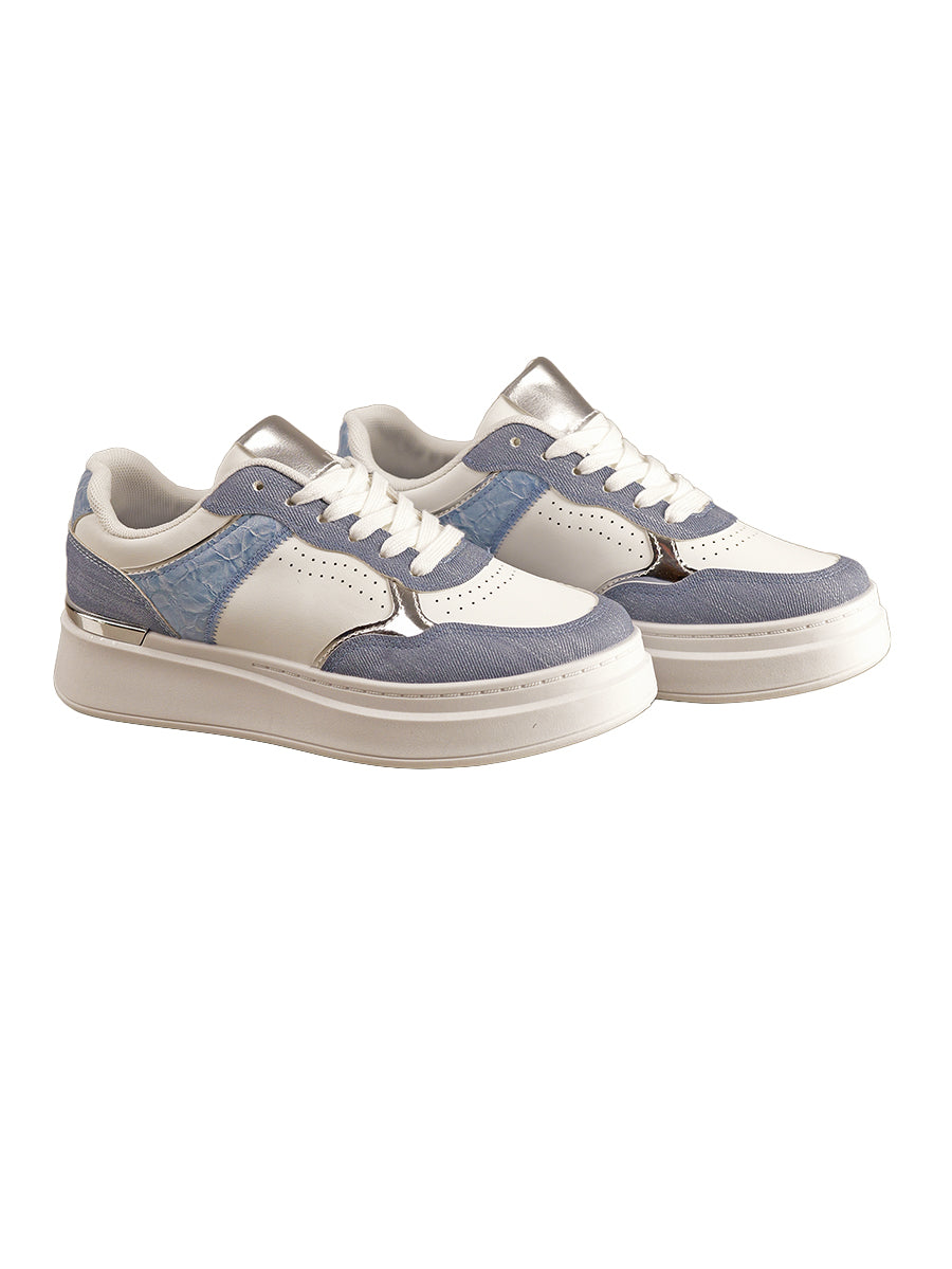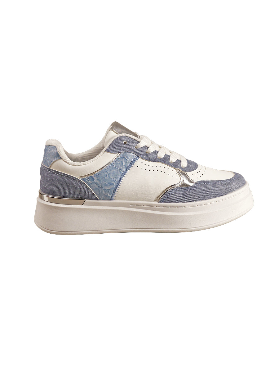 Sportiver Sneaker mit Denim und Snake Optik Einsätzen