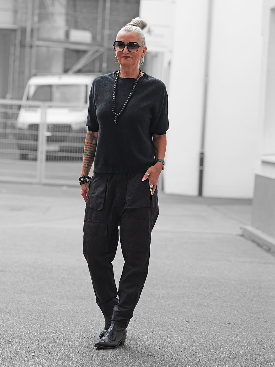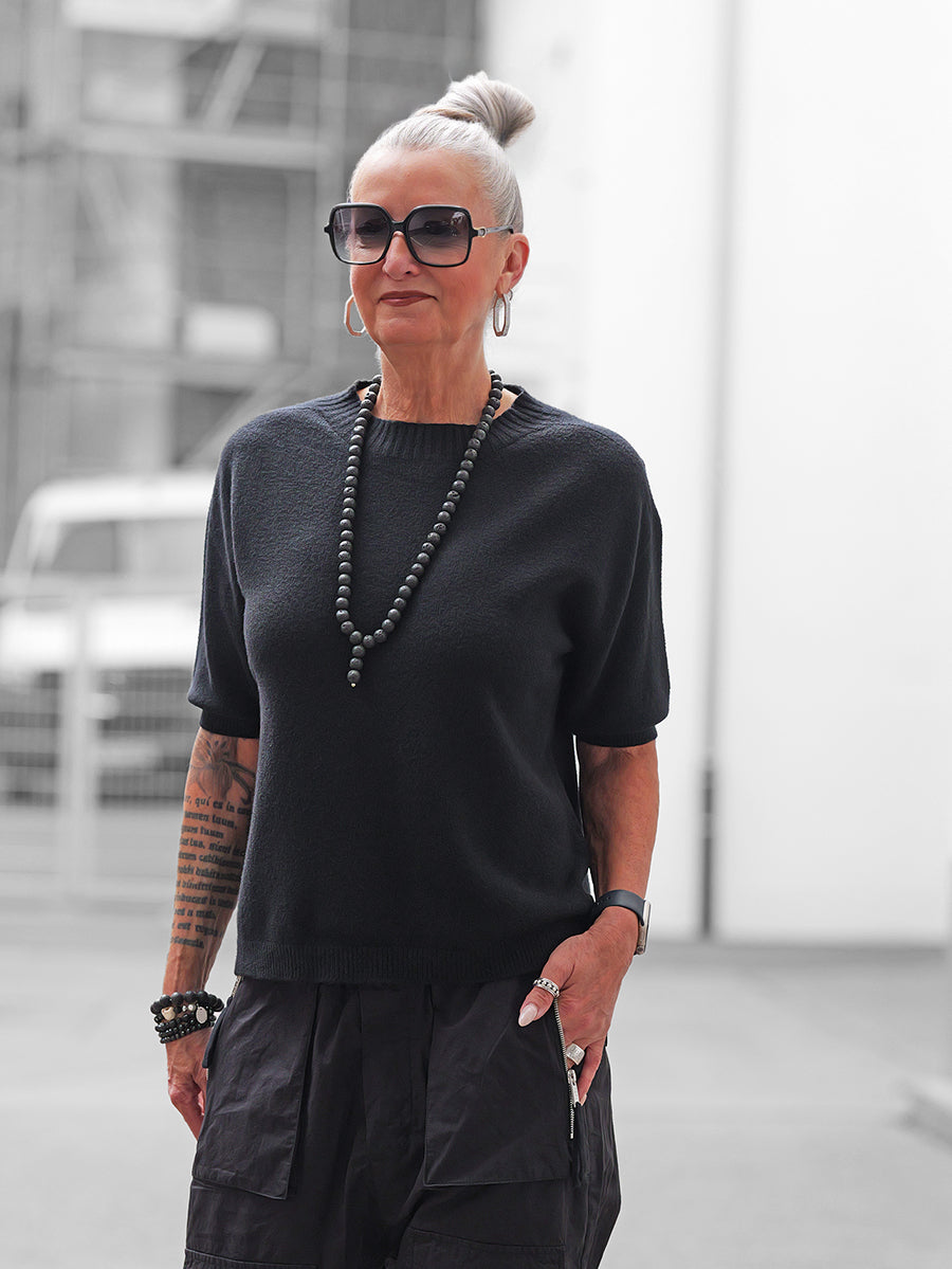 Styling-Tipp: Ob zu Cargo Pants, Jeans oder Rock – mit dem Pulli Tina setzt du immer auf einen cleanen, modernen Look.