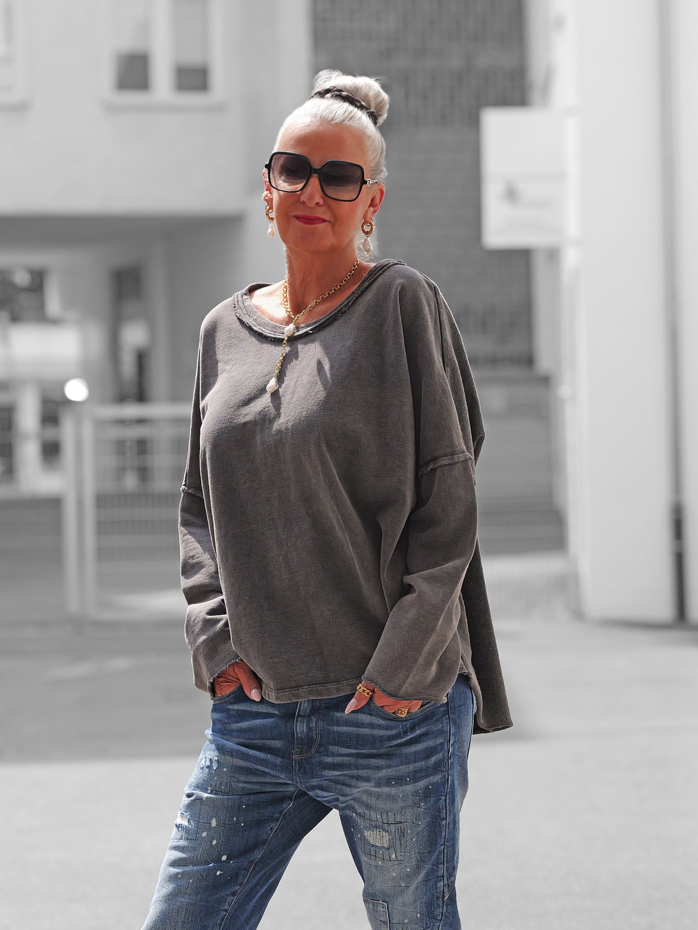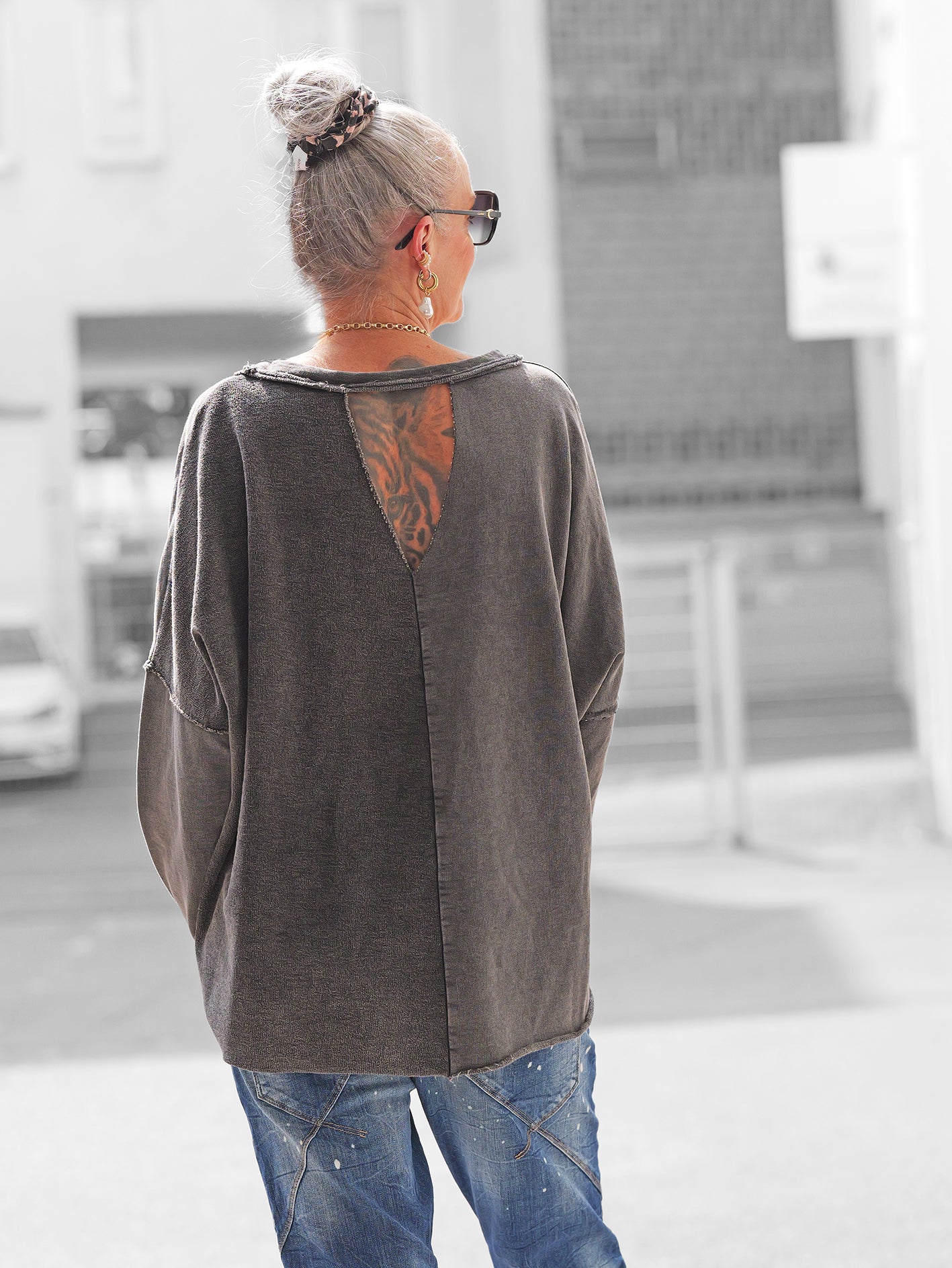 • Lässiger Oversize-Schnitt mit langen Ärmeln