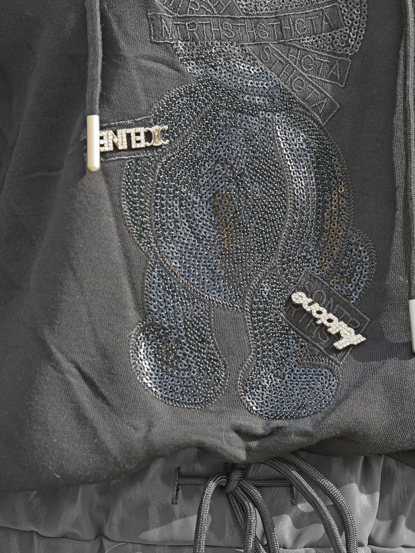 Unser Sweater Pezzai ist ein Statement-Piece mit besonderem Twist. Der coole Frontprint in 3D-Optik mit funkelnden Pailletten und Stickereien sorgt für einen edlen Streetstyle-Look. Die Kapuze mit Tunnelzug und die lässige Passform machen ihn super bequem und gleichzeitig absolut trendig.
