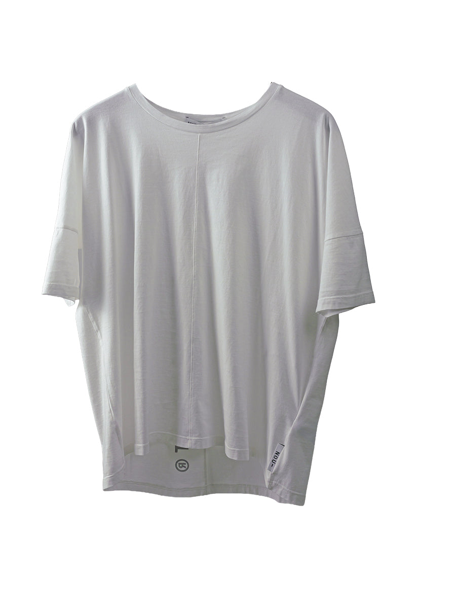 Die charakteristische Mittelnaht vorne sowie der vertikale Logo-Print auf dem Rücken (bei der weißen Variante) geben dem Shirt den typischen Nuomeno-Concept-Signature-Look.