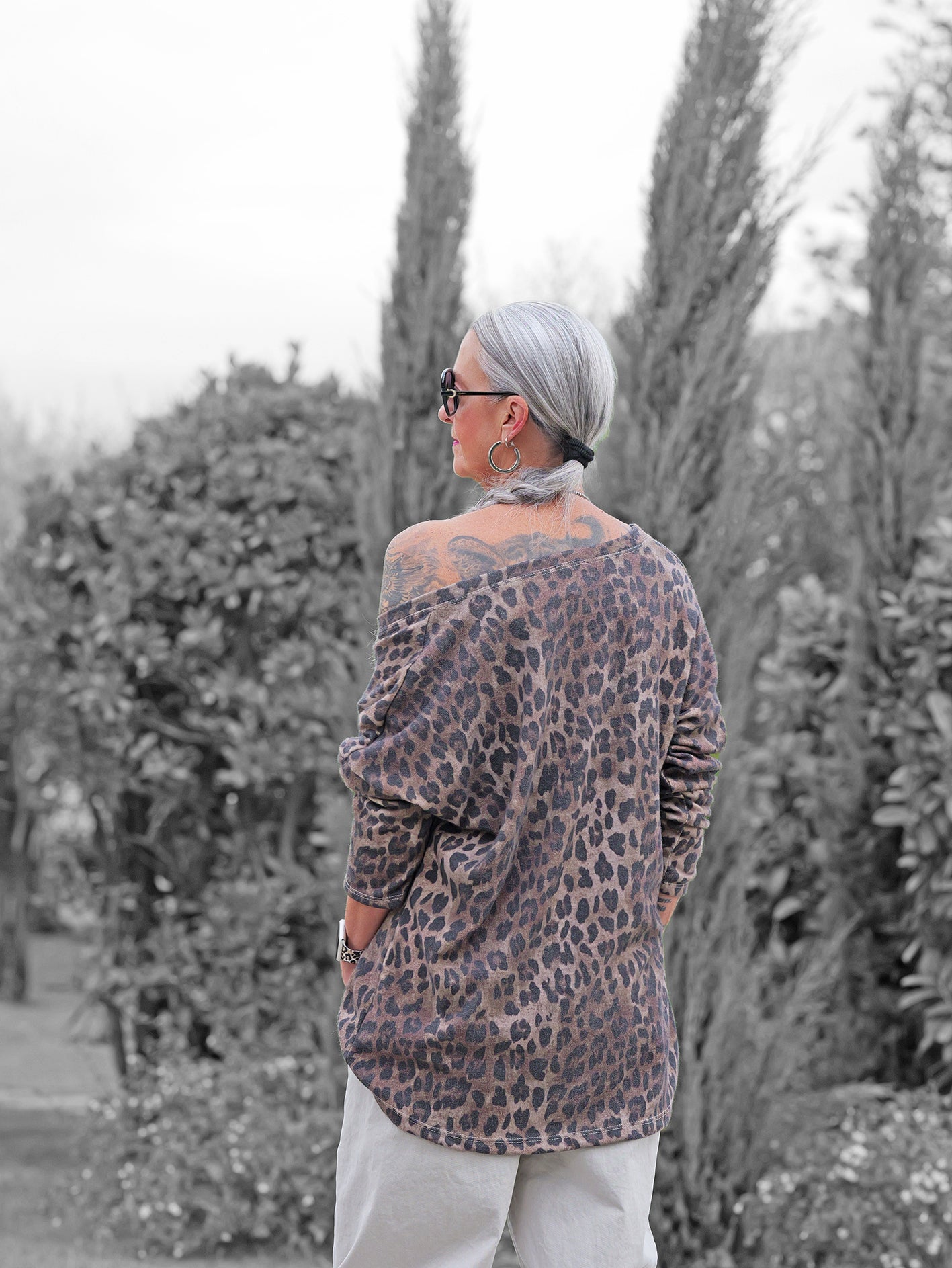 Ein echtes Statement-Piece: Unser Longsleeve Astrid im angesagten Leo-Print bringt einen Hauch von Wildheit in deinen Look. Der weiche Materialmix aus 60 % Viskose, 35 % Wolle und 5 % Elasthan sorgt für Tragekomfort und eine angenehme Wärme – perfekt für die kühleren Tage.