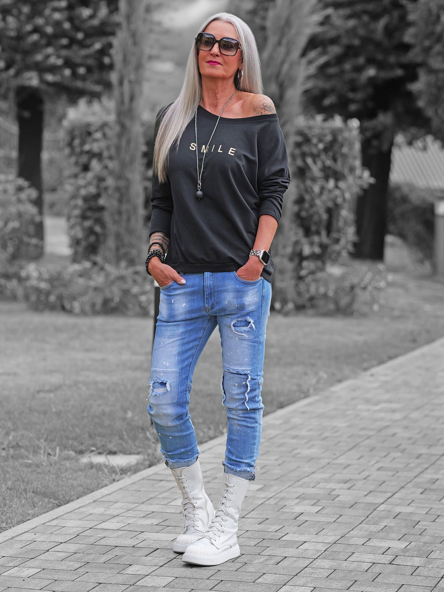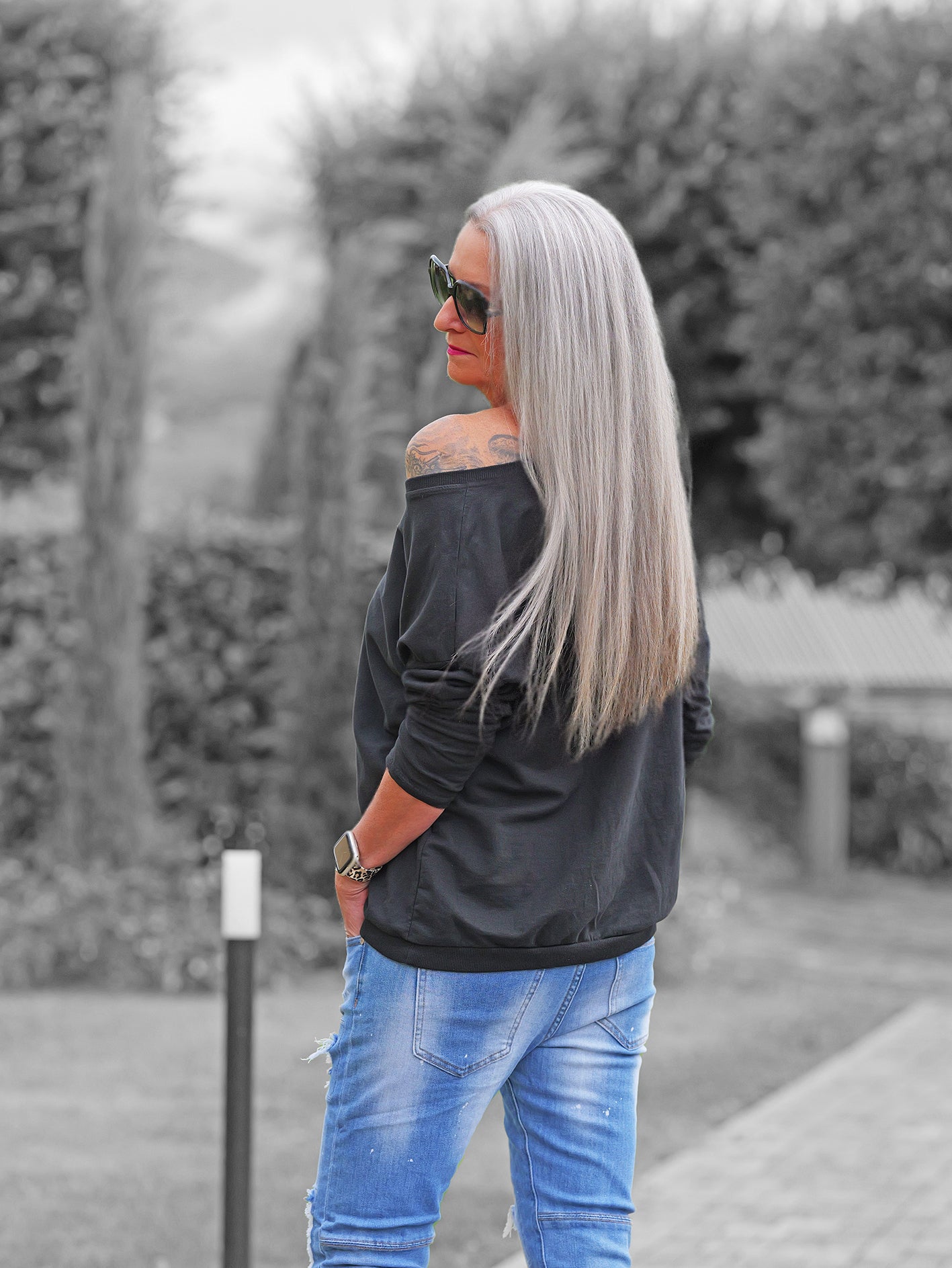 Lässiger Rundhals-Style, kann auch off-shoulder getragen werden