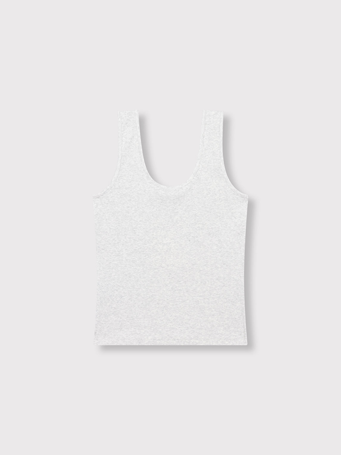 Gefertigt aus einem weichen Rib Jersey aus Viskosemix, schmiegt sich das Top angenehm an den Körper an und sorgt für eine feminine Silhouette. Der klassische Tanktop-Schnitt mit breiten Trägern macht es zu einem vielseitigen Stylingpiece – ideal als Basic für viele Looks.