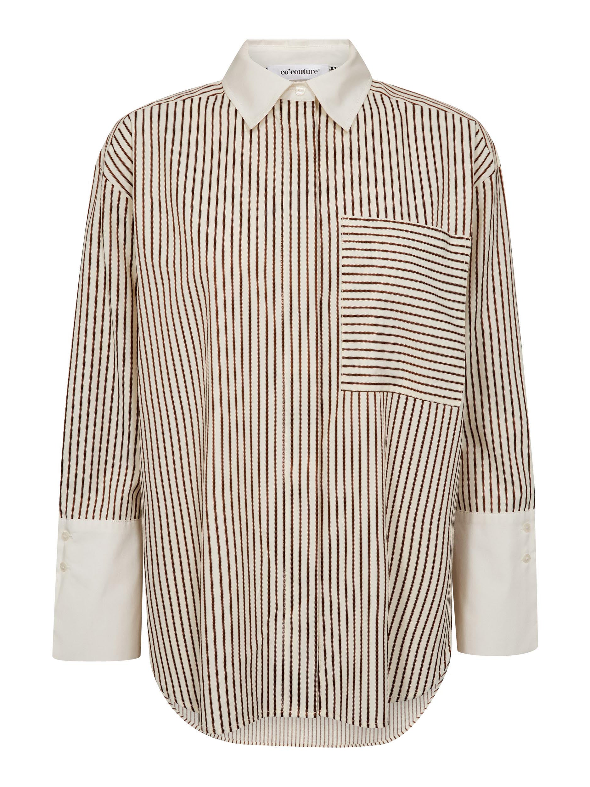 Die Bluse „Avara“ von Co’Couture verbindet klassische Eleganz mit modernem Oversize-Look. Das feine Streifenmuster sorgt für einen stilvollen, zeitlosen Charakter, während der lockere Schnitt der Bluse eine entspannte und moderne Silhouette verleiht.
