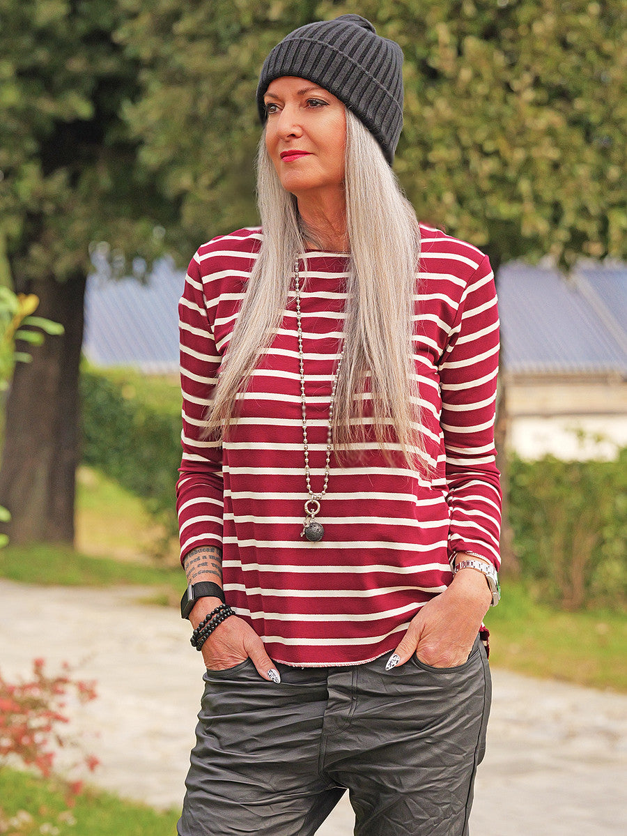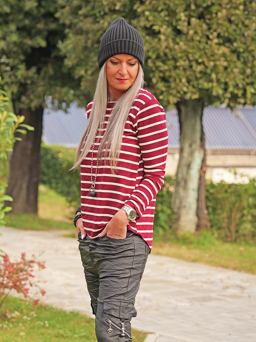 Unser Ringel Donna ist das perfekte Shirt für alle, die Komfort und Stil mühelos kombinieren möchten. Die hochwertige Materialmischung aus 95 % Baumwolle und 5 % Elasthan sorgt für ein wunderbar weiches Tragegefühl, leichte Elastizität und eine Passform, die einfach jeder Frau schmeichelt.