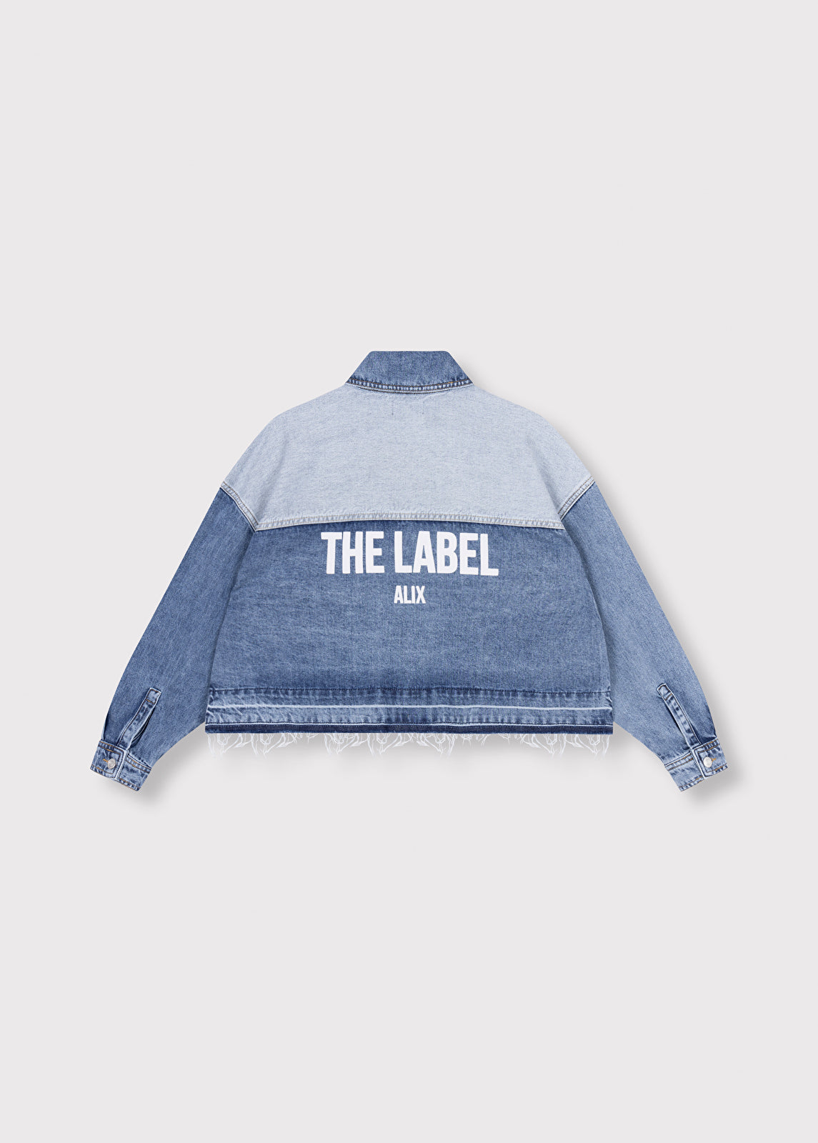 Diese leicht verkürzte Denim-Bluse von ALIX the Label ist ein echtes Statement-Piece und verbindet Coolness mit moderner Lässigkeit. Der Mix aus zwei Denim-Waschungen, die markanten Nähte und der Raw-Cut-Saum verleihen der Bluse eine edgy, individuelle Note. Auf der Rückseite setzt der große „THE LABEL – ALIX“ Print ein klares Style-Signal.