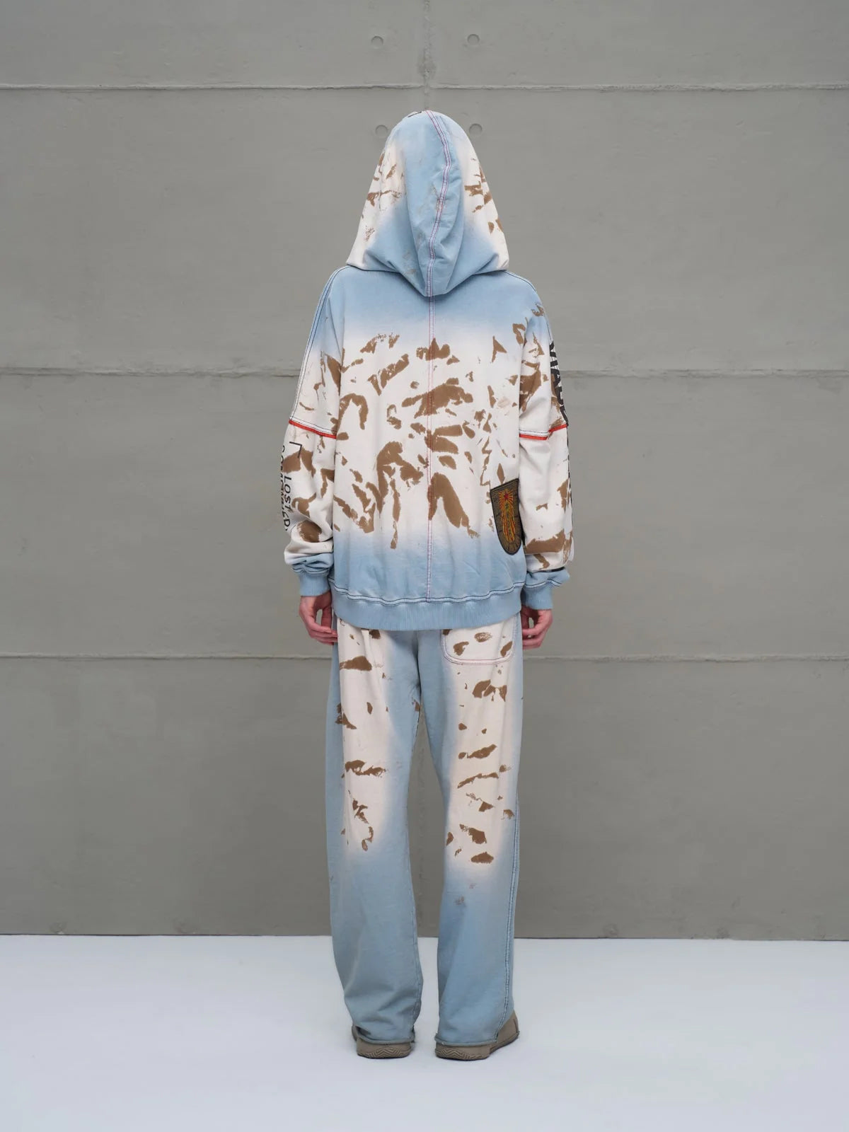 Der entspannte Relaxed Fit sorgt für maximalen Tragekomfort, während der hochwertige Interlock-Sweatstoff eine angenehme Haptik bietet. Die kunstvolle Farbgestaltung in Blue-Beige verleiht den Pants einen urbanen, edgy Look, der sich perfekt in moderne Streetstyles einfügt.