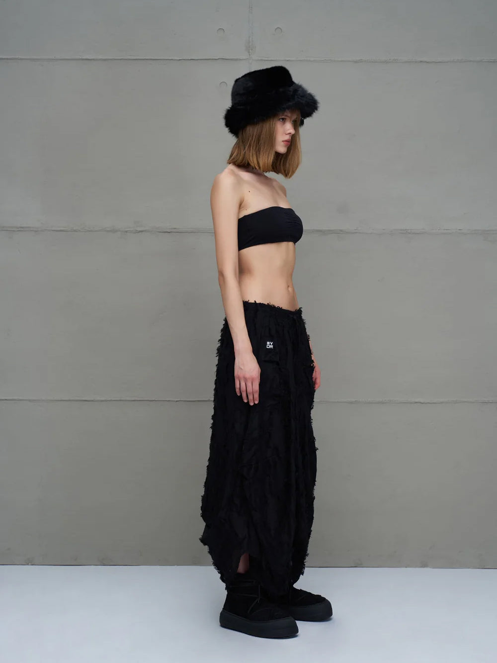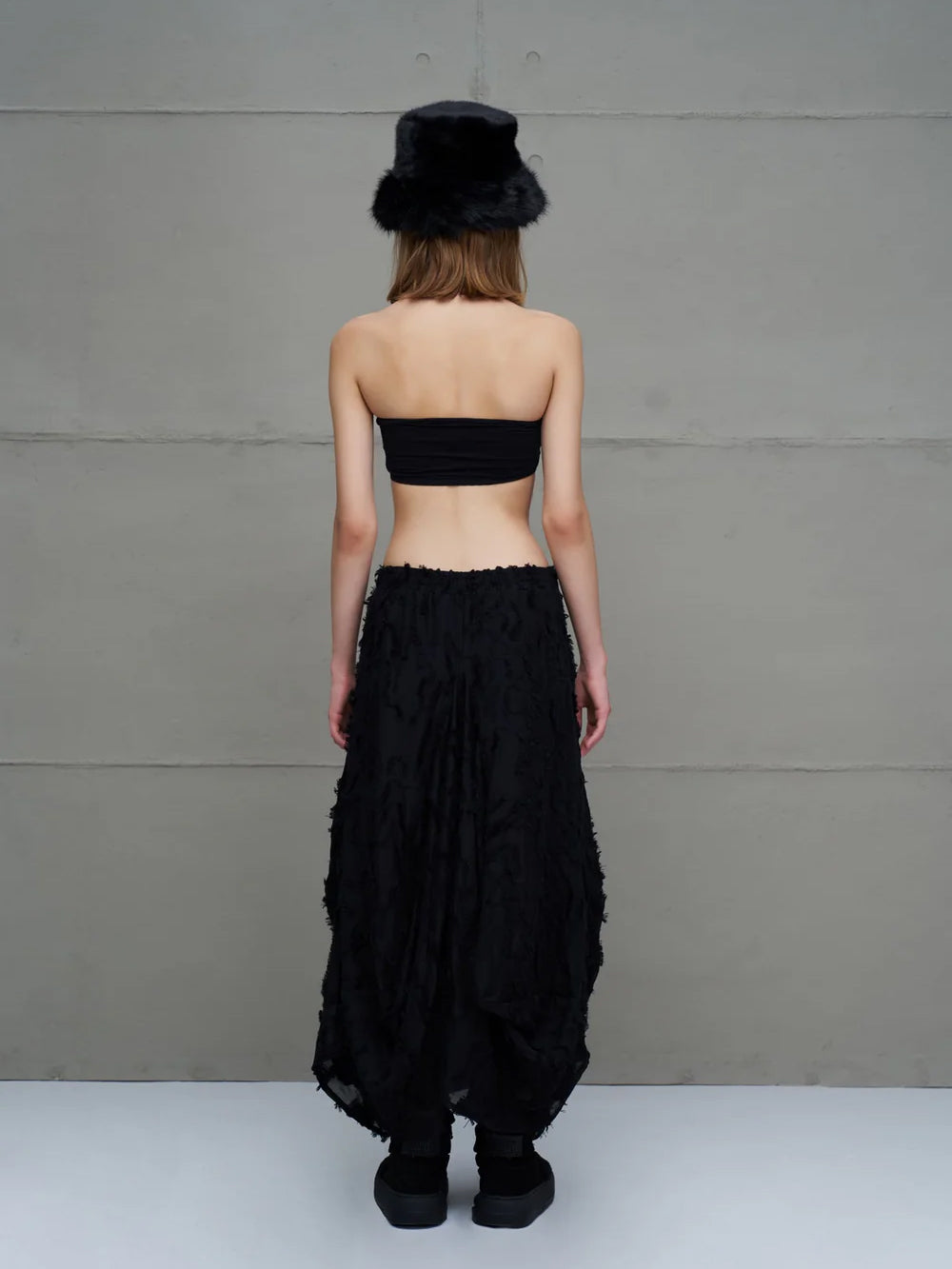 #VDR Black Semi-Sheer Tassel Midi Skirt 18170
