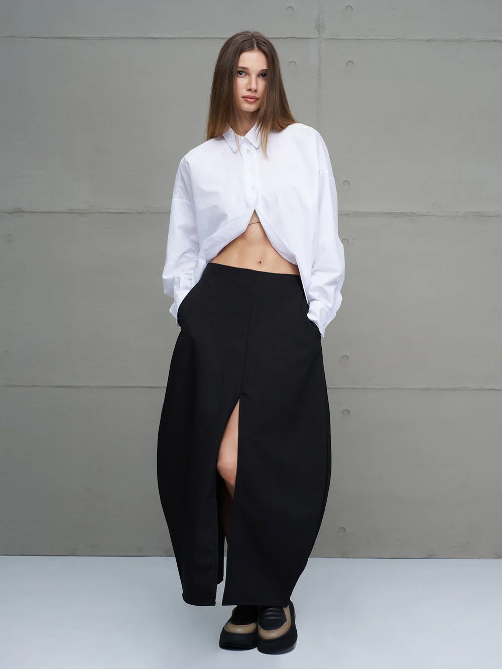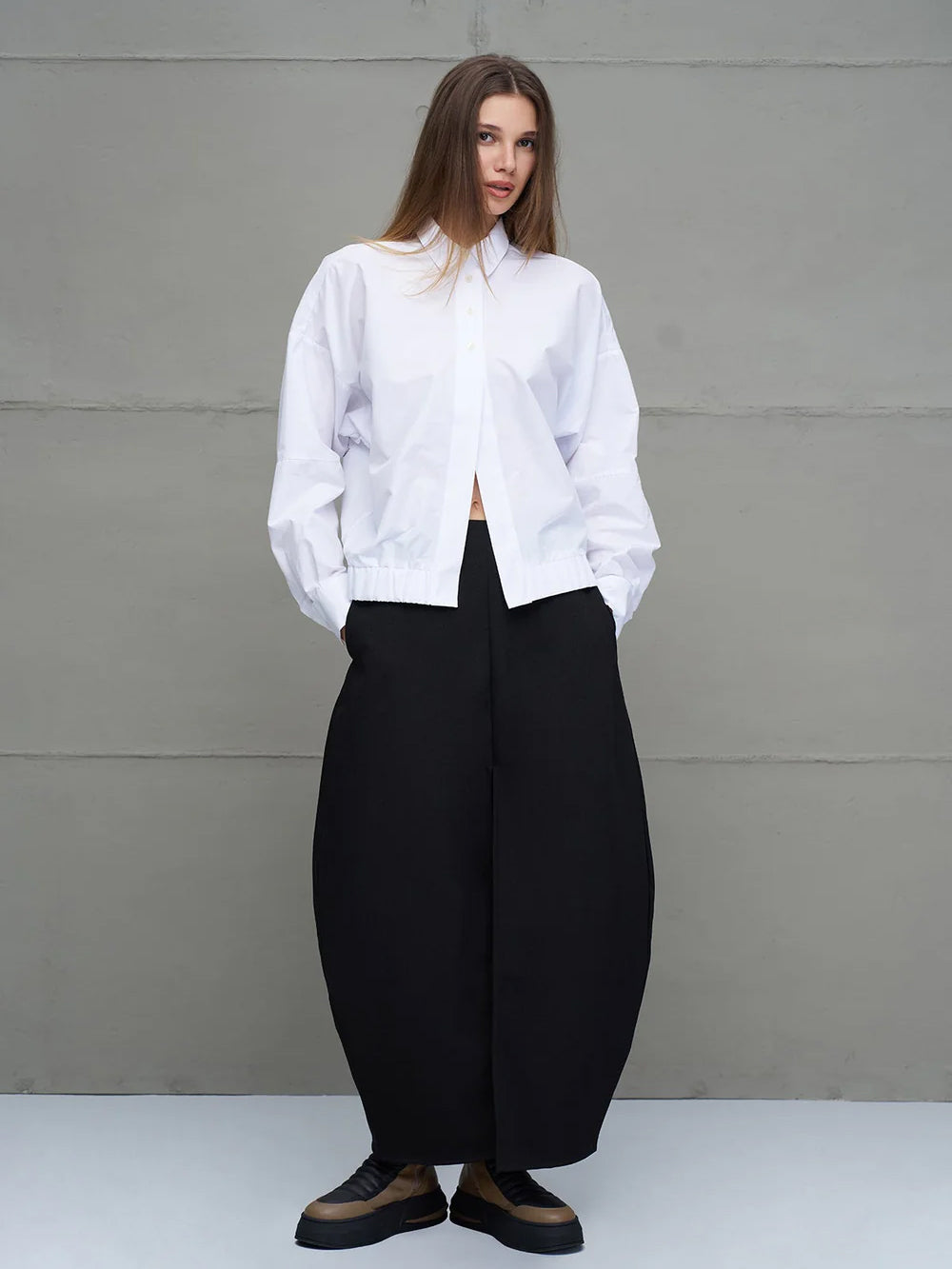 Kombiniere die Bluse zu weitem Rock, High-Waist-Hose oder Denim – perfekt für einen lässig-eleganten Alltagslook mit Persönlichkeit.