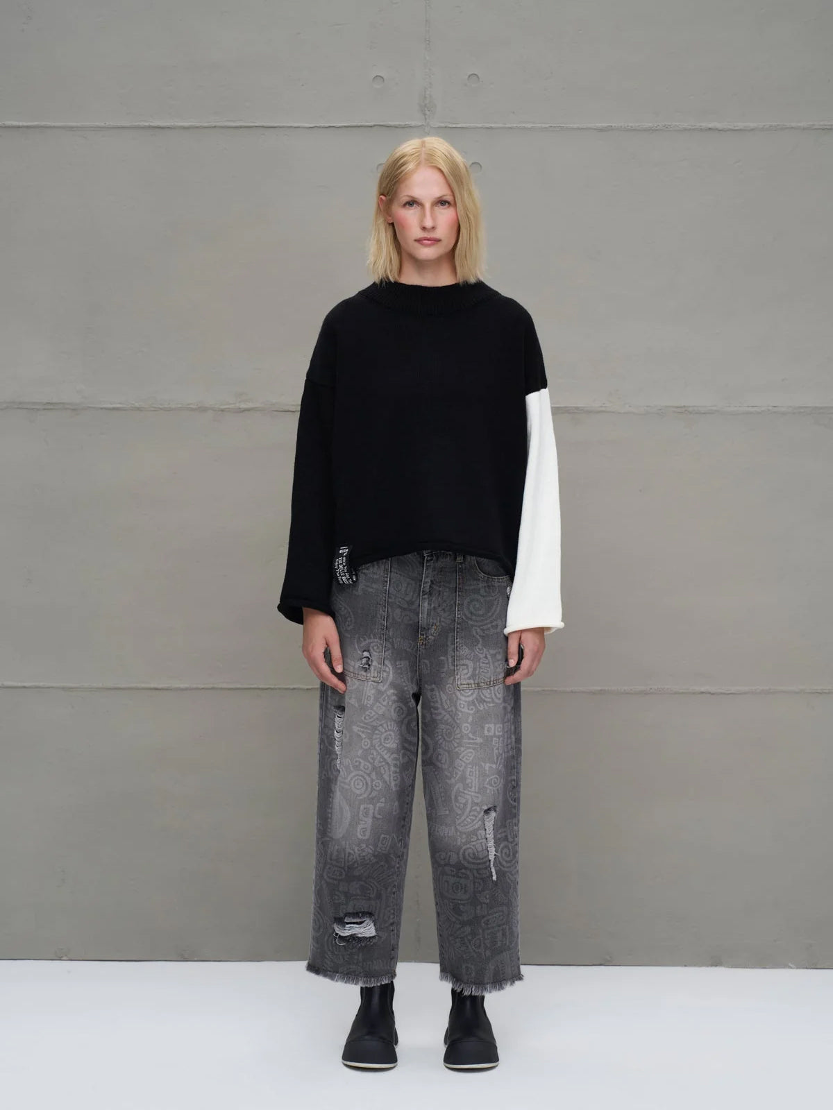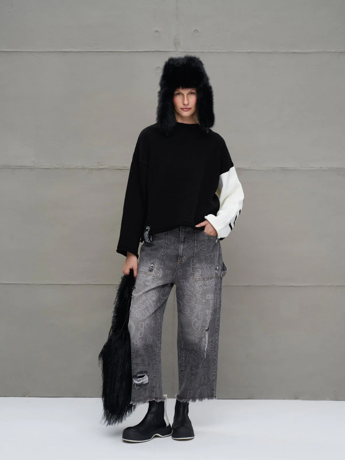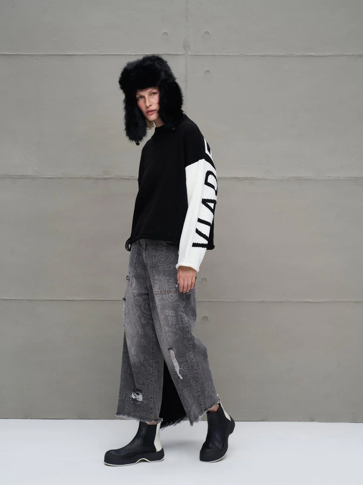 Der Black Off White Lettering Knit Sweater von #VDR Viadellerose vereint urbanen Style mit modernem Strickdesign. Gefertigt aus 100 % Acryl, bietet er eine angenehm weiche Haptik und trägt sich leicht und komfortabel.