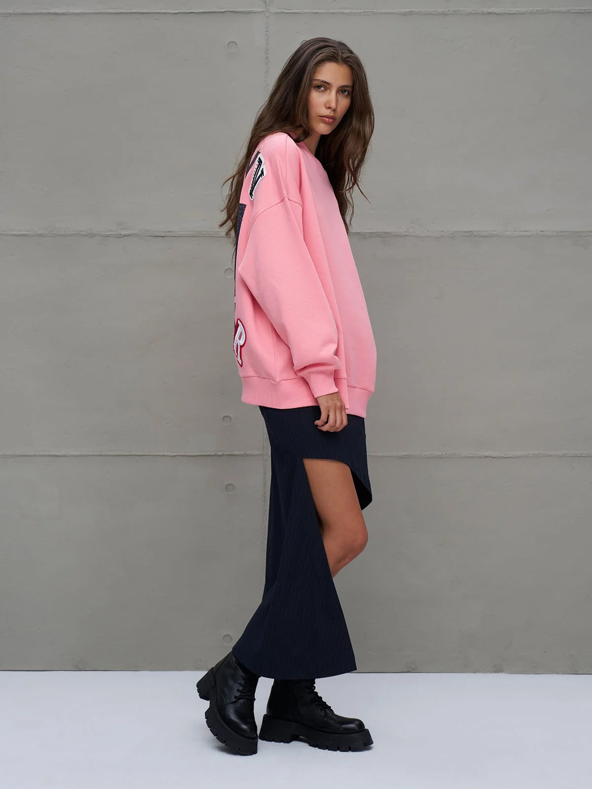 Dieses Oversized Sweatshirt von #VDR ist ein echter Hingucker. Der leuchtend pinke Farbton trifft auf einen coolen Statement-Print auf der Rückseite: “STAY ON TRACK”. Die aufgestickten Patches verleihen dem Look zusätzlich einen verspielten Streetstyle-Twist. Durch das weiche Fleece-Innenfutter trägt sich der Sweater besonders angenehm – perfekt für lässige Alltagsoutfits.