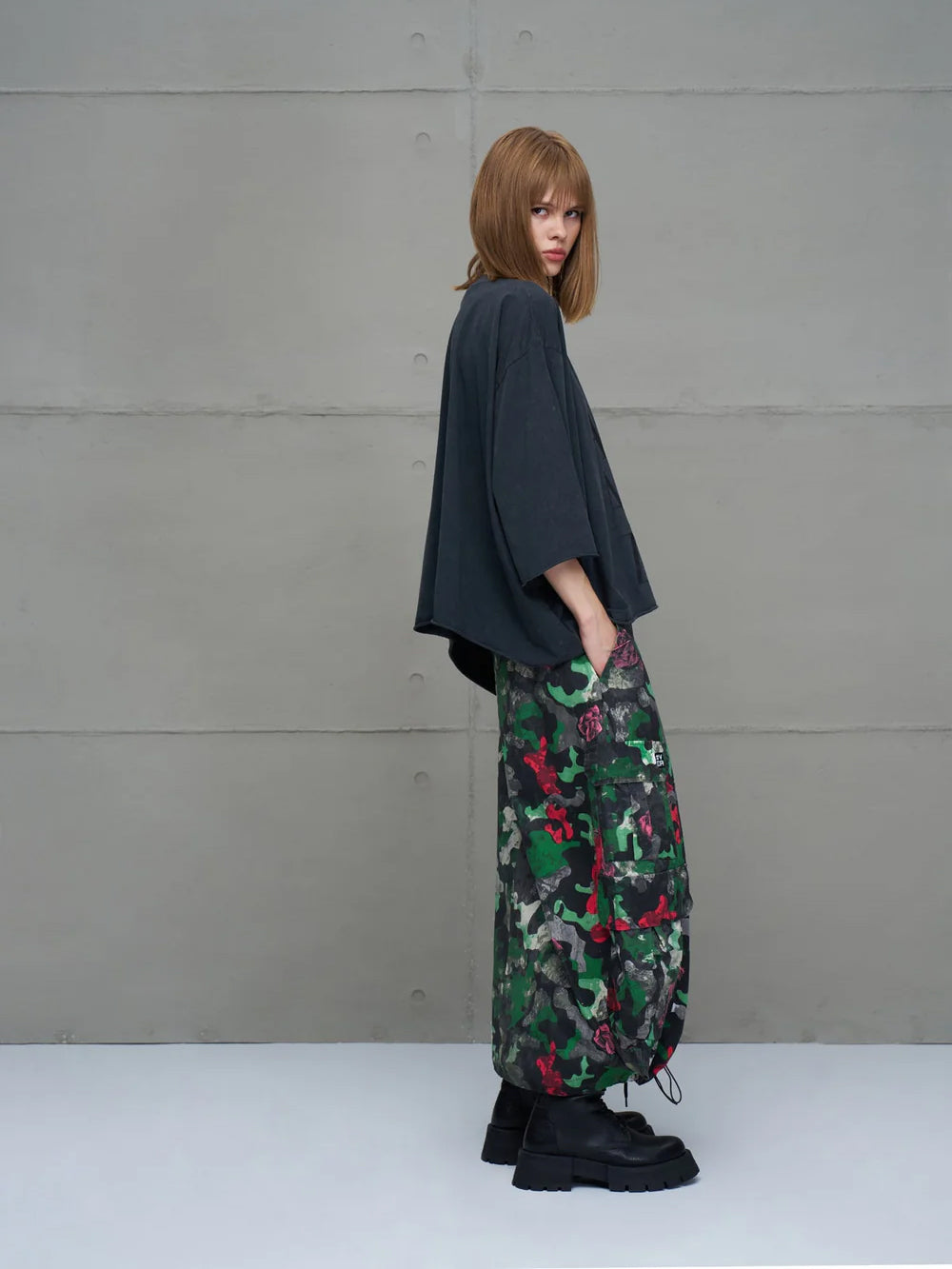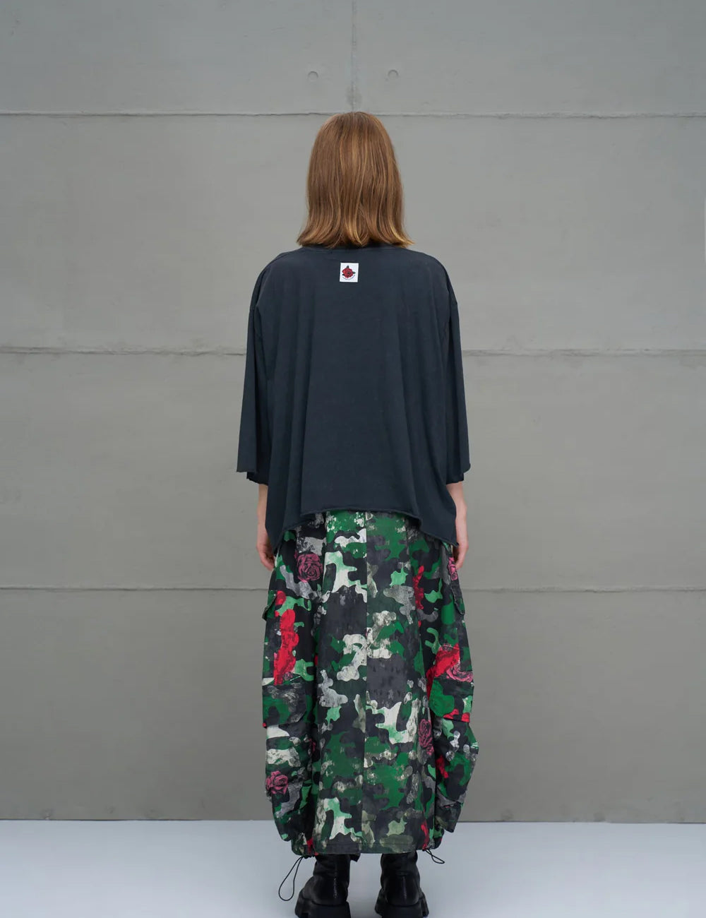 Der Crewneck-Ausschnitt, der oversized Halbarm-Schnitt und der High-Low-Saum sorgen für eine entspannte Passform, während der Ton-in-Ton Slogan Print auf der Vorderseite dem Shirt eine subtile, aber markante Note verleiht. Ein vielseitiges Piece, das perfekt zu Jeans, Cargopants oder Statement-Skirts kombiniert werden kann.